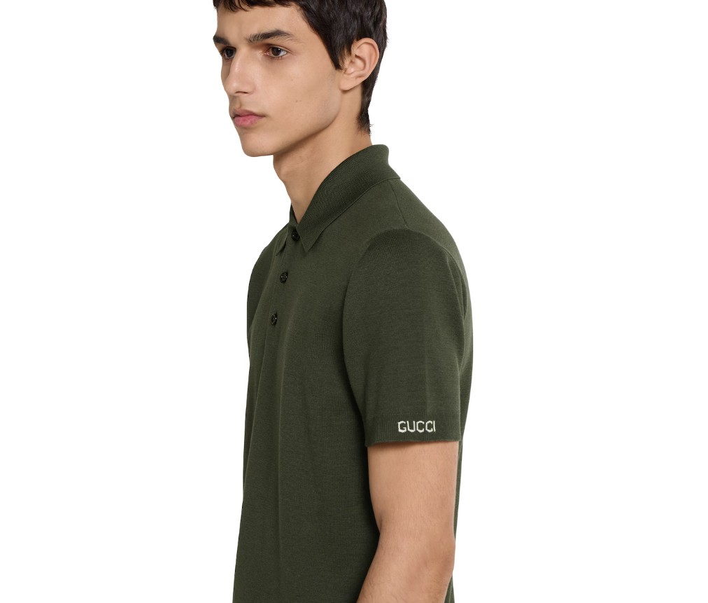 2025 프리폴 컬렉션은 데이웨어부터 이브닝 웨어까지, 상징적인 디테일이 돋보이는 에센셜 실루엣을 선보입니다. 이 클래식 폴로 셔츠는 포레스트 그린 실크 코튼 니트 소재로 제작되었으며, 소매에는 구찌 인타르시아 디테일이 더해져 더욱 돋보입니다.