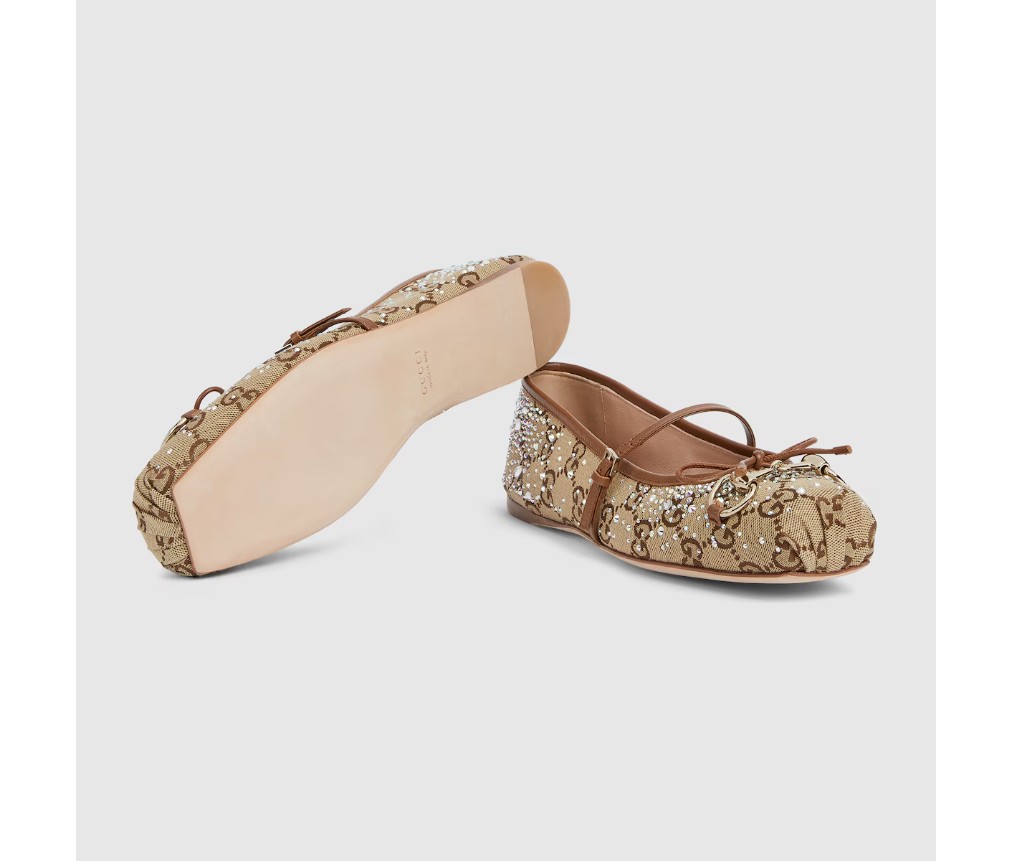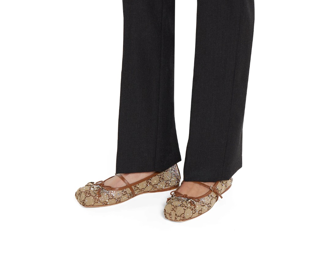 2025 가을/겨울 컬렉션에서 선보이는 이 시그니처 호스빗 발레 플랫은 사각형 토캡과 섬세한 리본 디테일로 특징지어지는 오리지널 발레 슈즈 실루엣에 경의를 표합니다. GG 캔버스 소재로 제작되었으며, 은은한 골드 톤의 호스빗 장식이 특징입니다. '사케토' 구조는 부드러운 패딩 처리된 깔창 덕분에 최상의 편안함을 선사합니다.