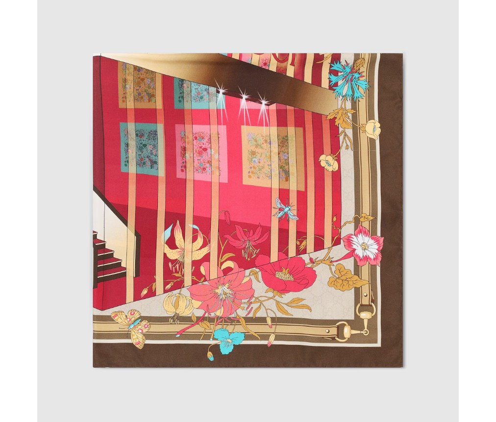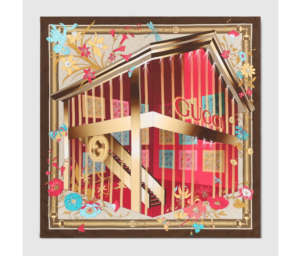 구찌 인쇄된 실크 능직 카레 8519953G0019888