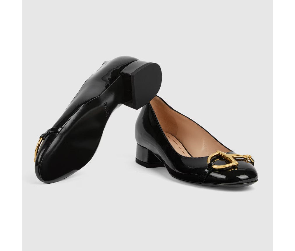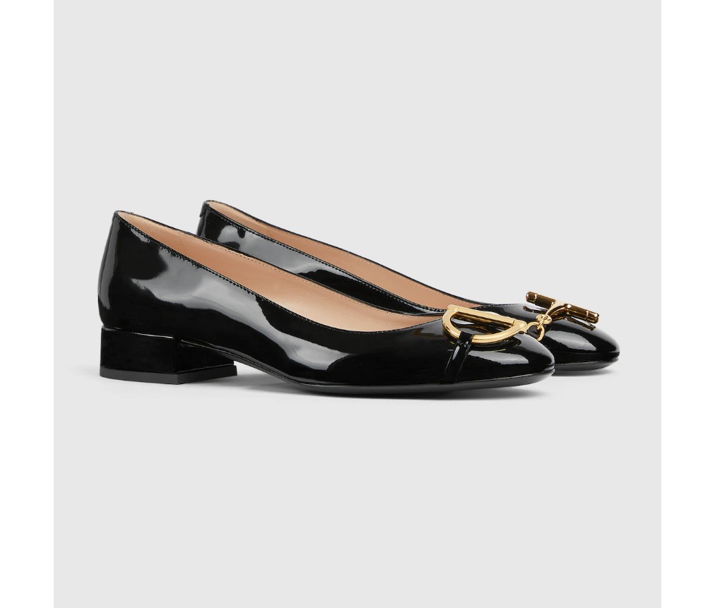 스타일 849652 BNC00 10002025 가을/겨울 컬렉션에 선보이는 이 여성용 발레 플랫은 광택이 나는 에나멜 가죽으로 제작되었으며, 하우스의 상징적인 코드를 통해 시대를 초월한 실루엣을 재해석했습니다. 골드 톤의 하프 호스빗 디테일은 승마 유산을 떠올리게 하는 동시에 현대적인 감각을 더해 세련된 분위기를 자아냅니다.