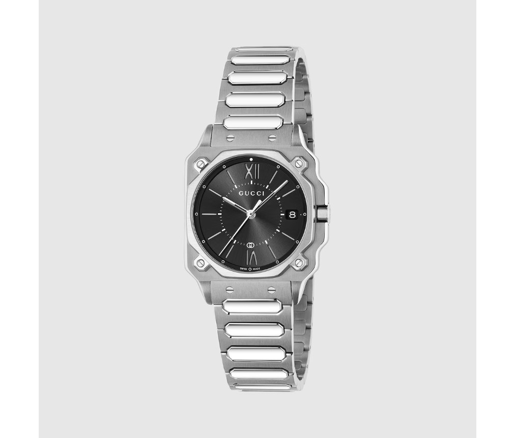 스타일 811582 I1600 11931970년대에 처음 선보인 G-플랫 워치는 브랜드의 헤리티지 디자인에 현대적인 감각을 더해 경의를 표합니다. 팔각형 모양과 여러 겹의 레이어드 프로파일이 특징인 이 시계는 1970년대 건축 풍경을 떠올리게 합니다. 스테인리스 스틸 소재에 블랙 아연 도금 다이얼과 날짜창이 특징인 이 시계는 1970년대의 건축적 풍경을 떠올리게 합니다.