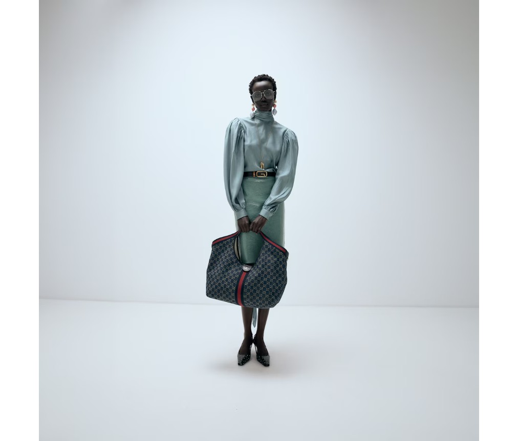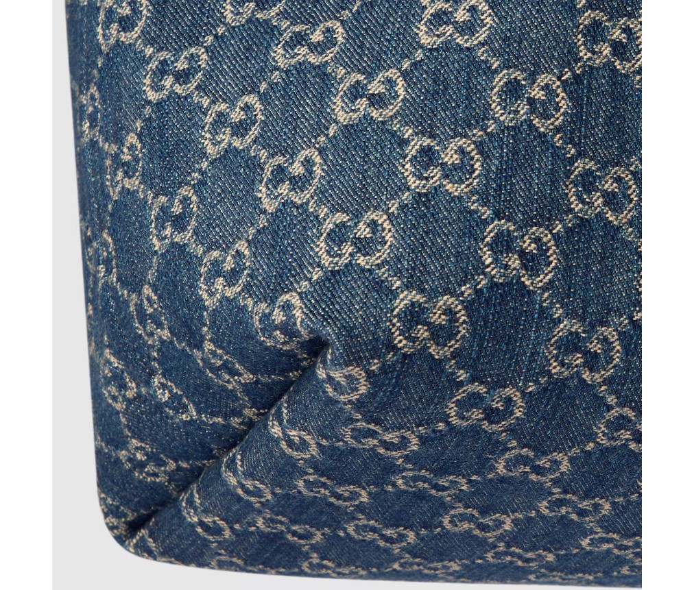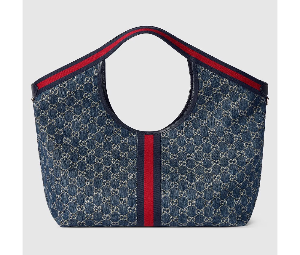 스타일 853971 FAFFQ 8864피렌체에서 열린 크루즈 2026 패션쇼에서 공개된 구찌 기글리오는 구찌의 이탈리아적 뿌리와 지속성, 그리고 혁신 정신에 대한 헌사입니다. GG 데님 소재로 제작된 이 넉넉한 토트백은 웹 트림이 특징이며, 탈부착 가능한 파우치가 포함되어 있습니다.