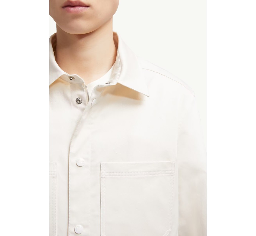 실용적인 면 개버딘 소재의 이 셔츠는 재킷으로도 활용 가능합니다. 기능성 작업복에서 영감을 받은 오버셔츠는 같은 디자인의 반바지 위에 레이어드하여 착용할 수 있습니다.