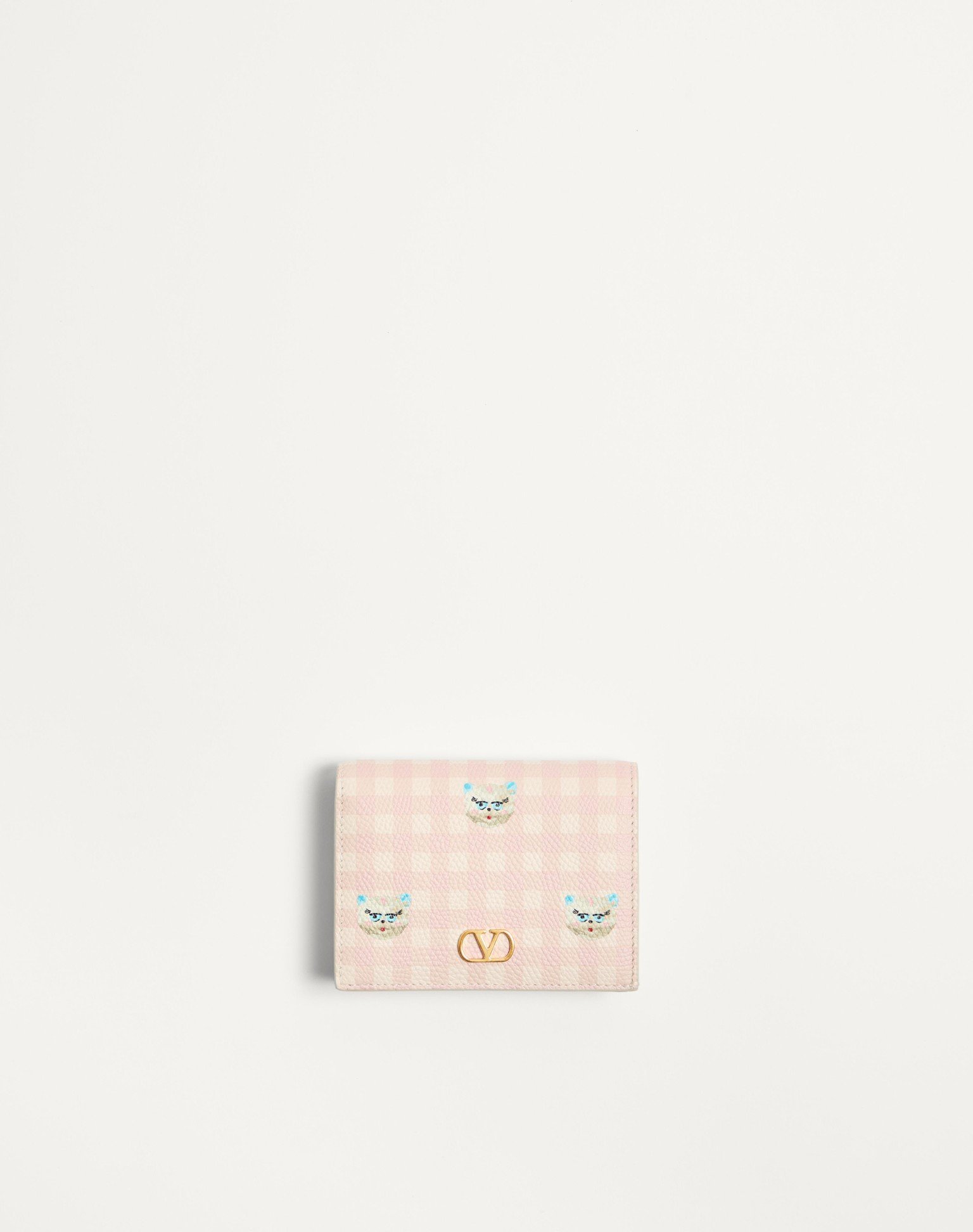 발렌티노 브이로고 시그니처 르 샤 드 라 메종 그레이니 카프스킨 지갑 8W2P0AJ3JVH_9PK