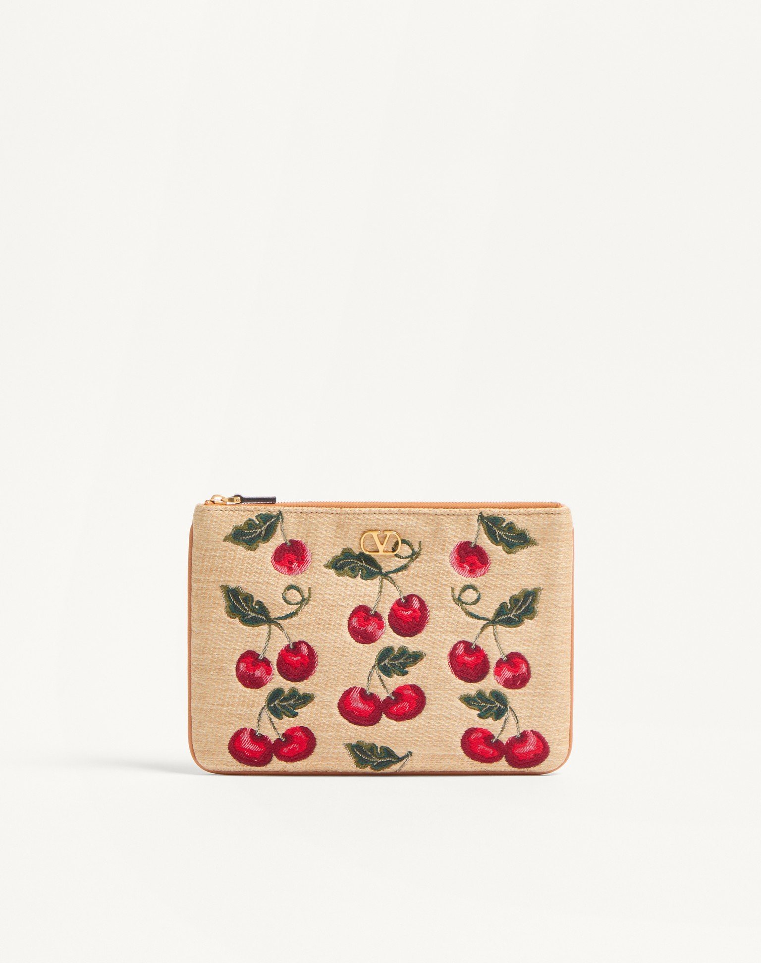 발렌티노 브이로고 시그니처 체리픽 패턴 자카드 라피아 파우치 6W0P0AK4CJR_R9F
