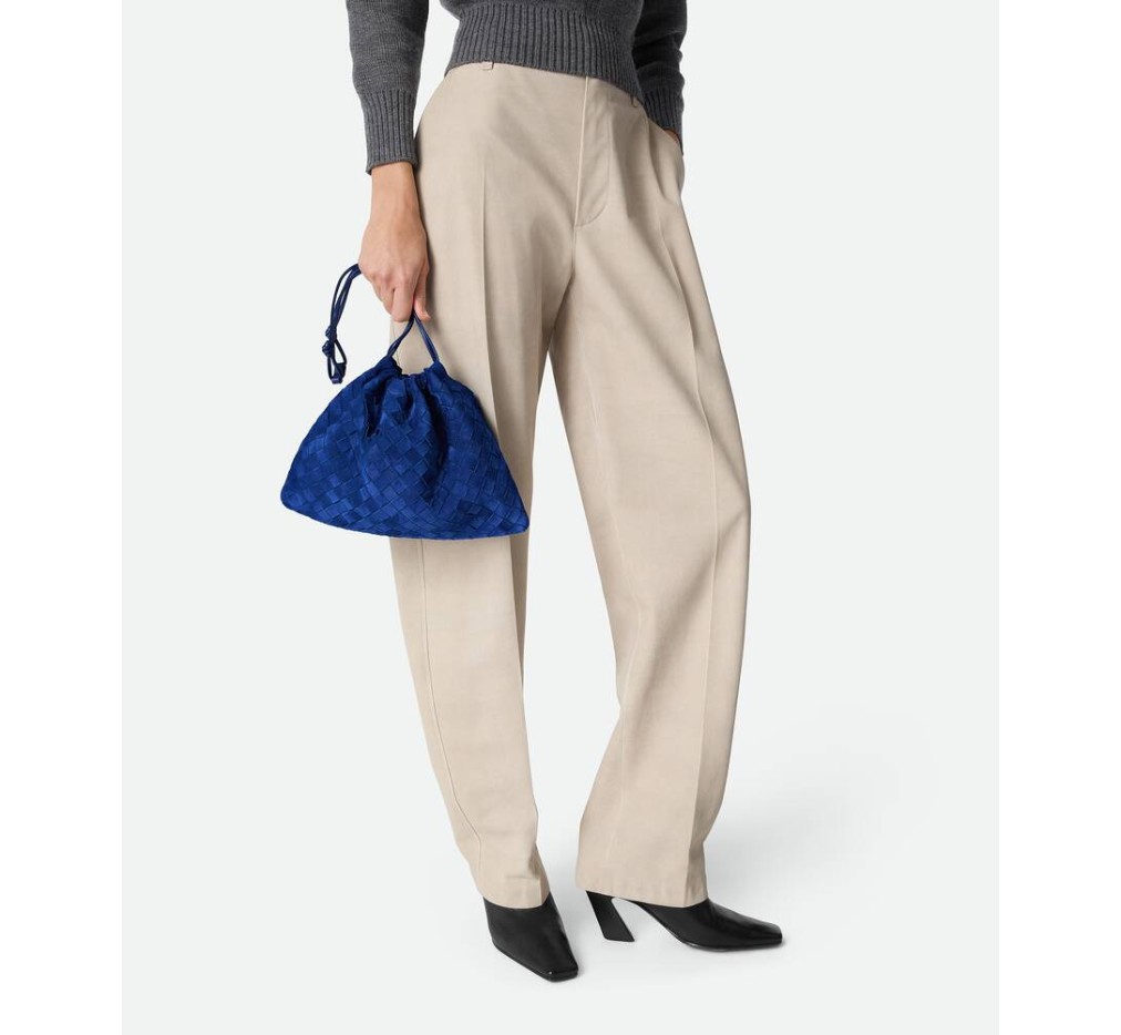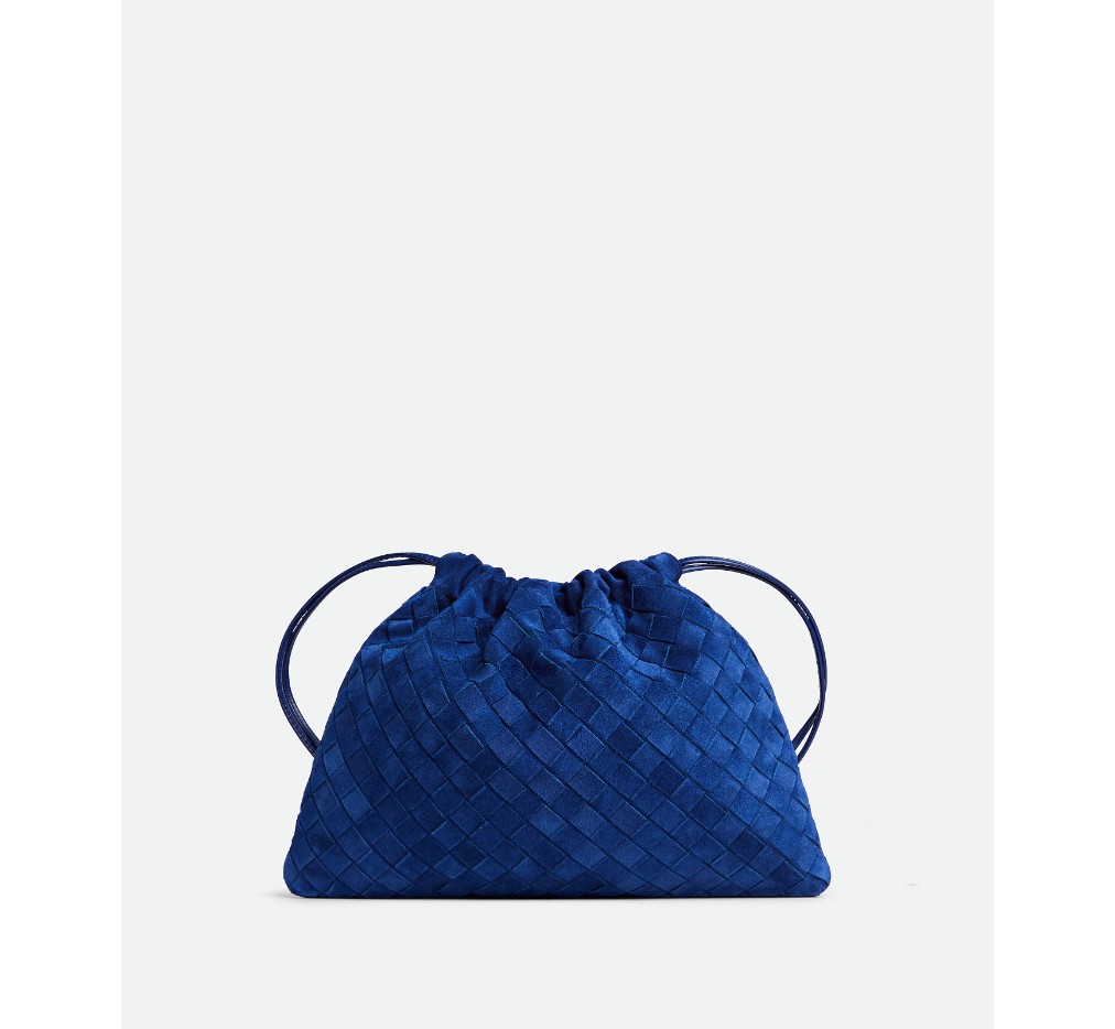 어깨에 메고 다닐 수 있도록 끈으로 여닫을 수 있는 고리와 인트레치아토 스웨이드 소재의 더스트백입니다.