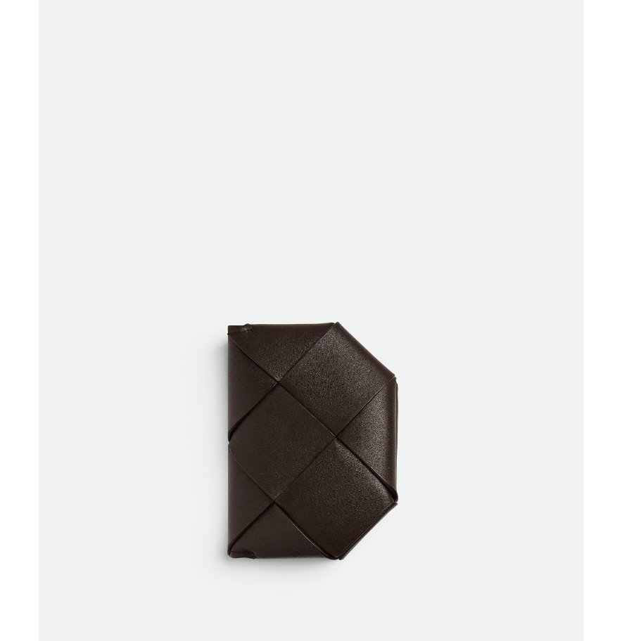 대조적인 내부를 갖춘 매끄러운 인트레치오 송아지 가죽으로 만든 카드 케이스입니다.