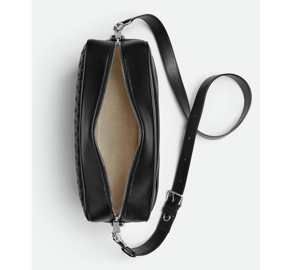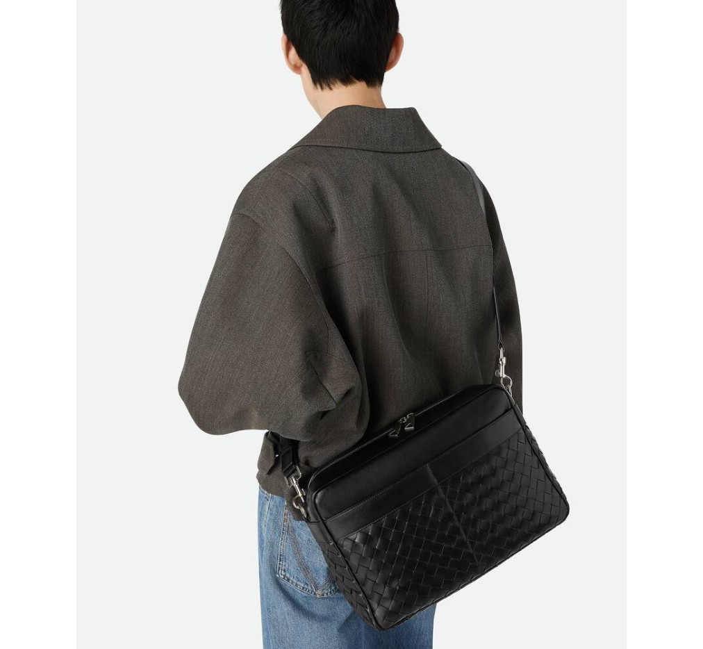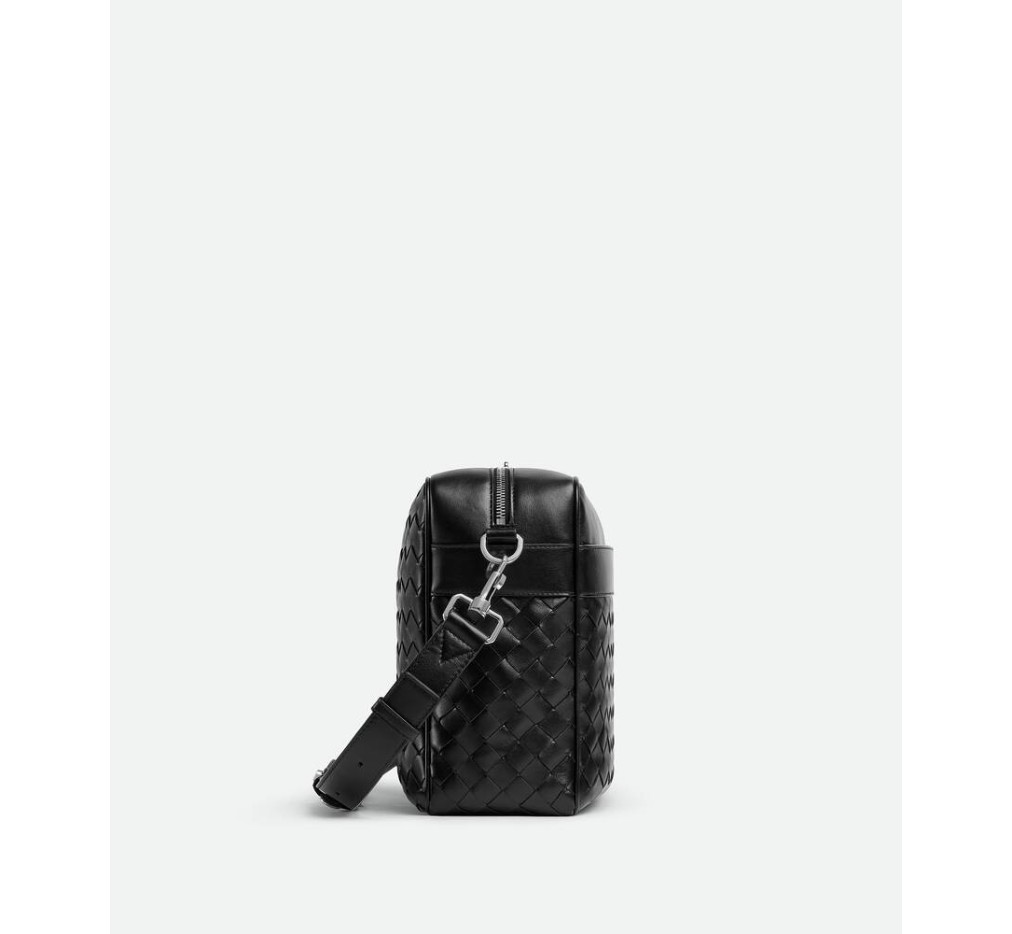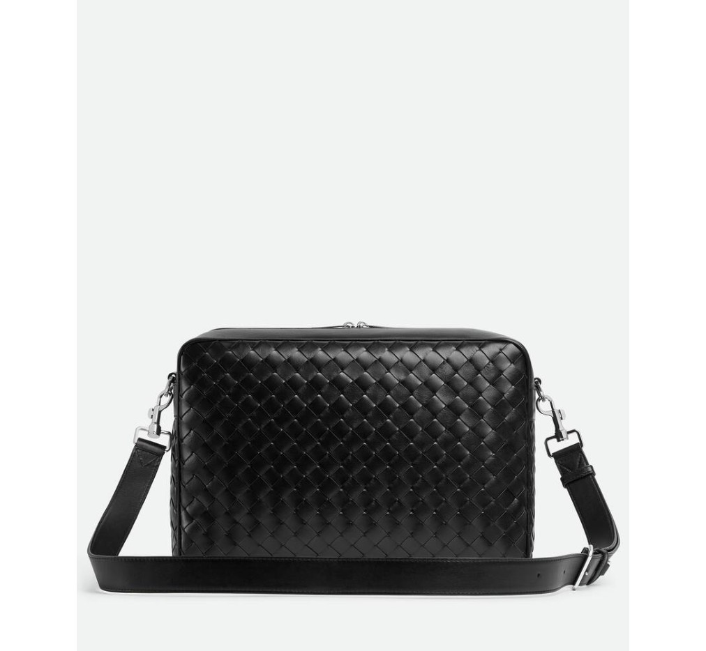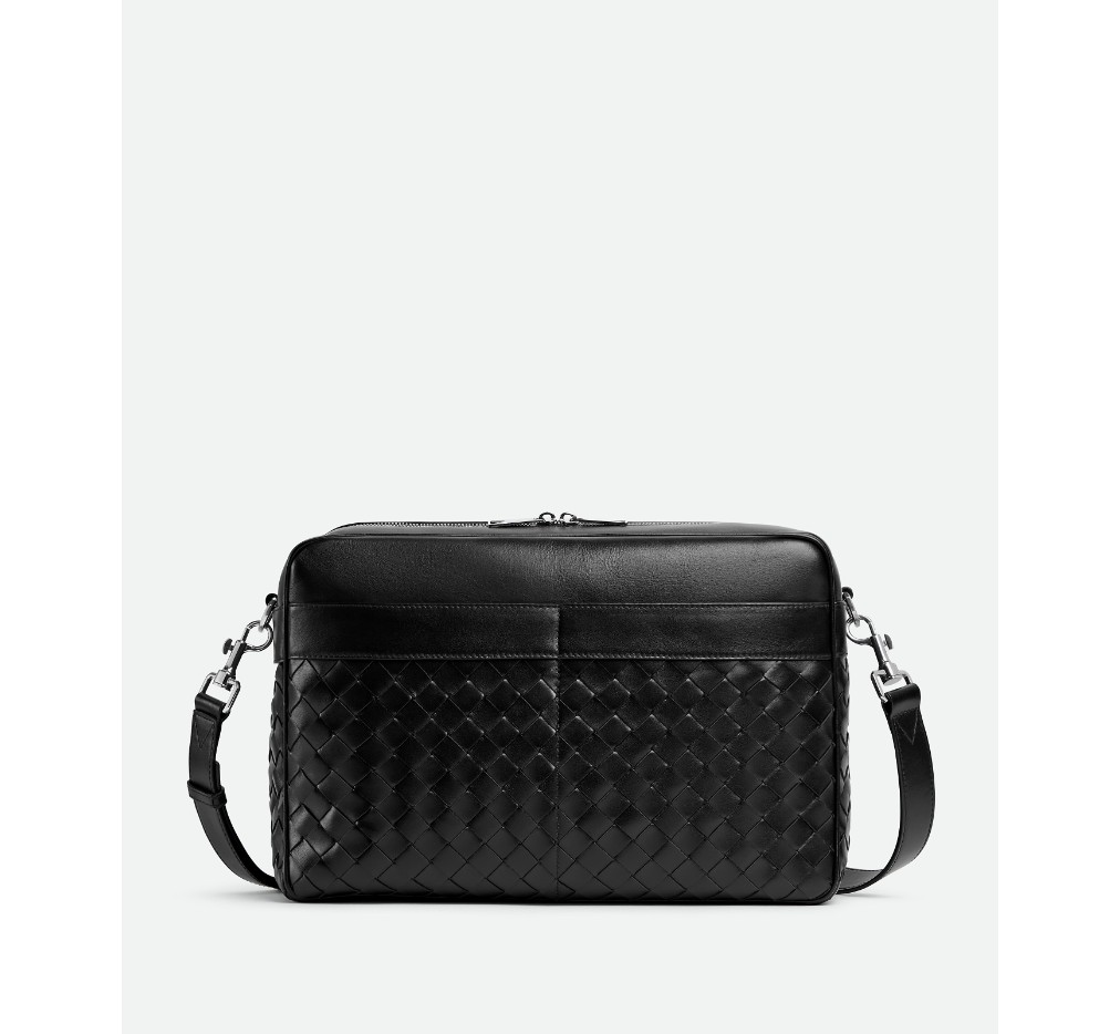 분리형 스트랩이 달린 인트레치아토 가죽 크로스바디 백.– 라지 인트레치아토 가죽 크로스바디 백 (탈부착 가능한 스트랩과 메탈 D링 포함)