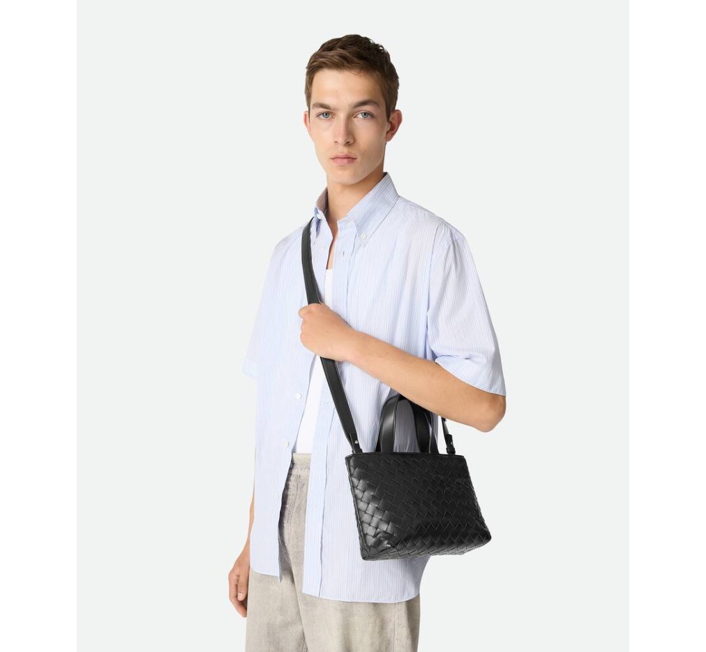 조절 및 분리 가능한 크로스바디 스트랩이 달린 인트레치아토 가죽 지퍼 토트백입니다.– 조절 및 분리 가능한 크로스바디 스트랩이 있는 미니 인트레치아토 가죽 지퍼 토트백