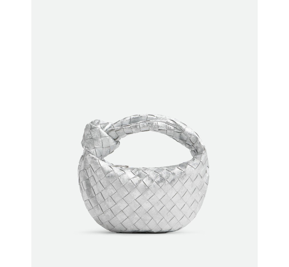 – 미니 인트레치아토 라미나 새틴 가죽 탑 핸들 백