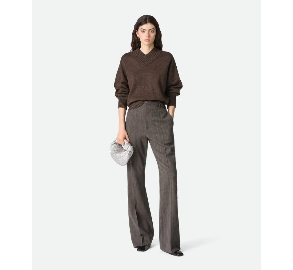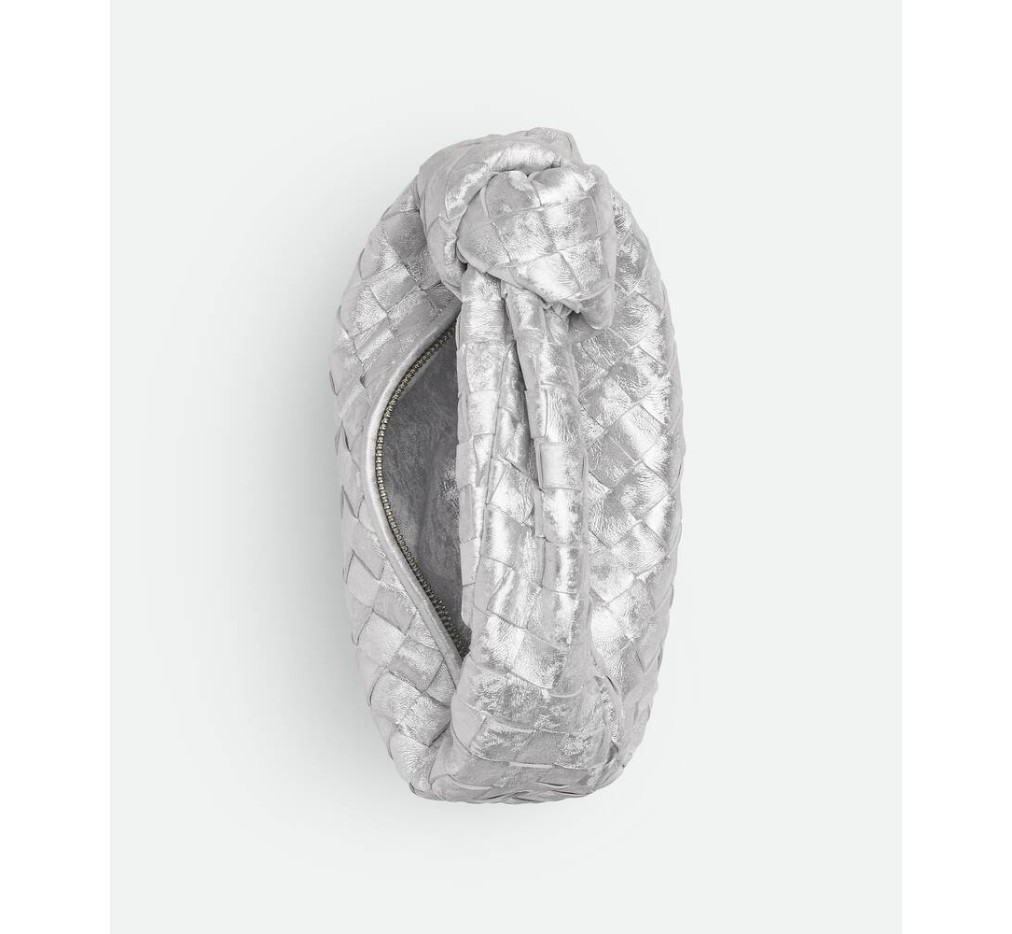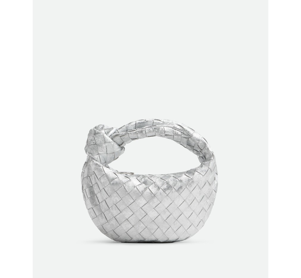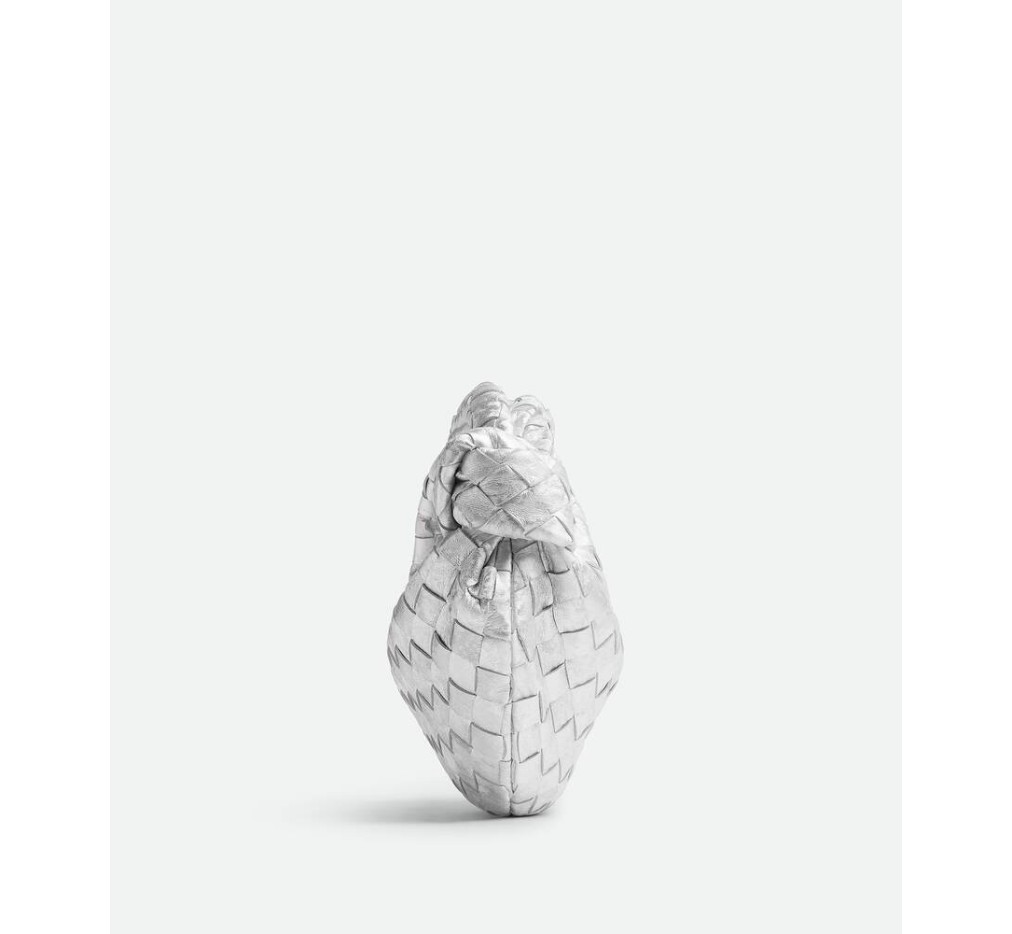 새틴 마감이 특징인 인트레치아토 라미네이트 가죽으로 제작한 둥근 모양과 시그니처 매듭이 특징인 탑 핸들 백입니다.