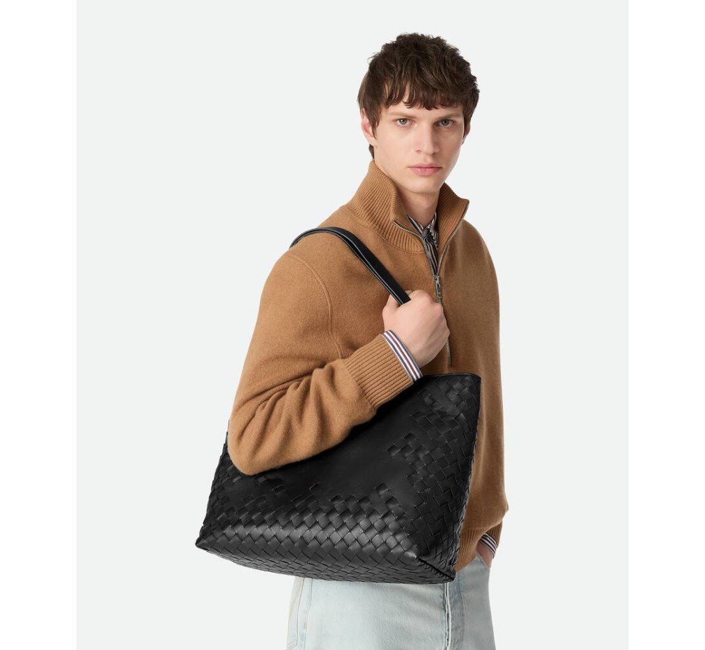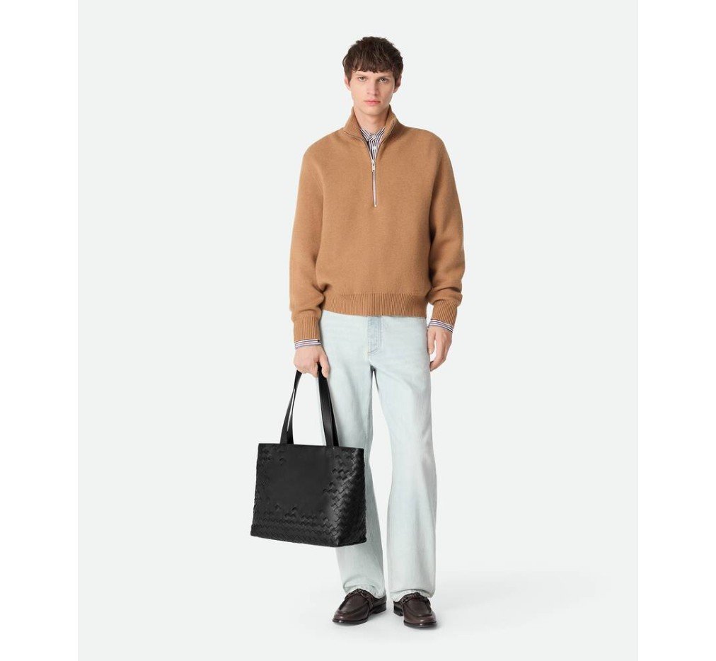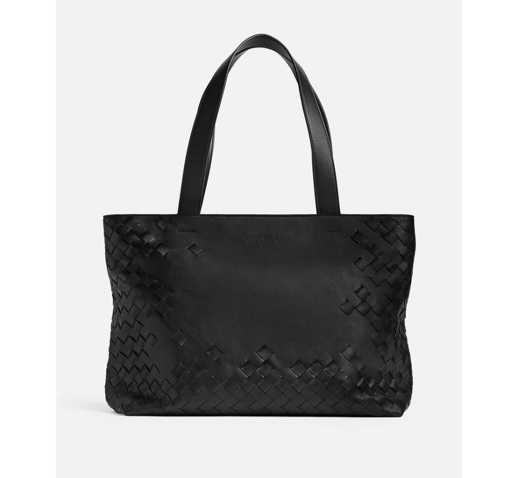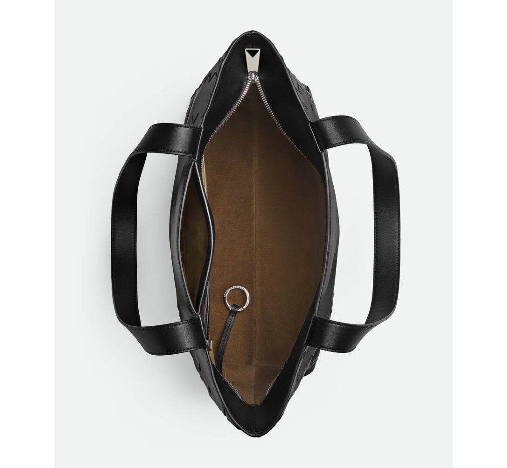 인트레치아토 실크 송아지 가죽으로 만든 지퍼 토트백으로, 아카이브에서 영감을 받은 전면적 그라데이션 효과가 특징입니다.