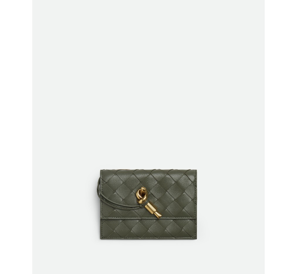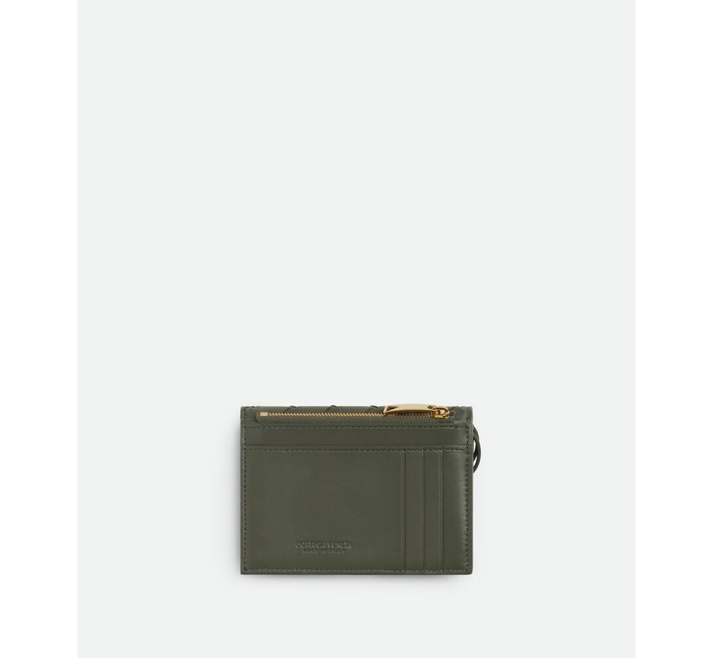 인트레치아토 나파 가죽 소재의 슬림한 지퍼 카드 케이스로, 시그니처 매듭 디테일이 특징입니다.
