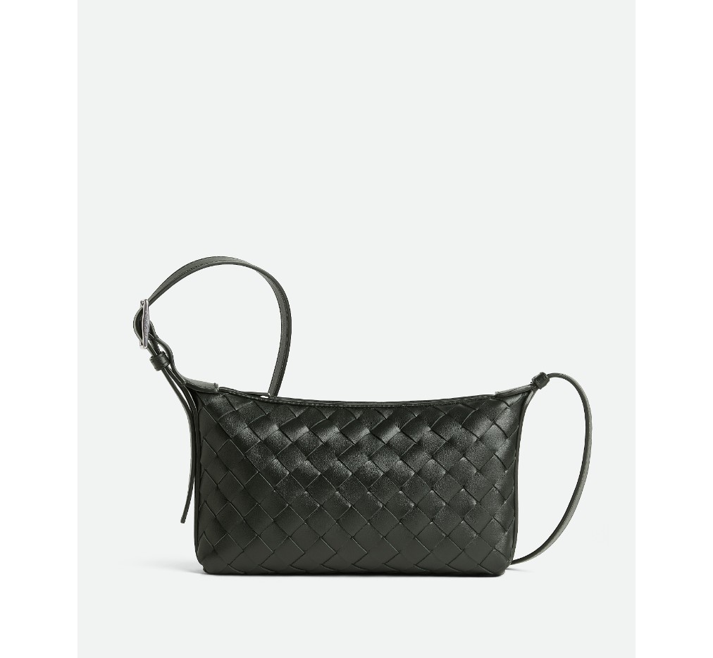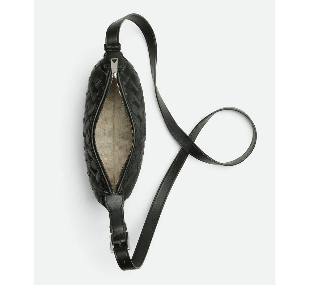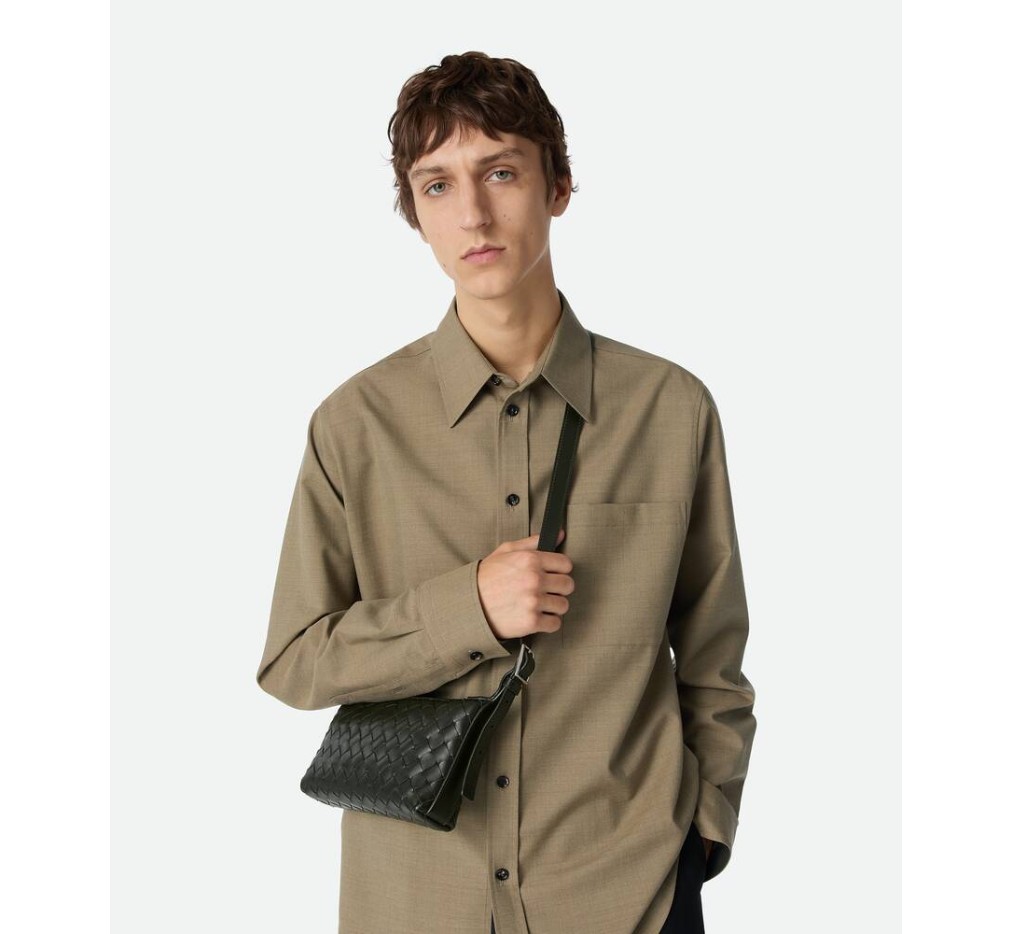 인트레치아토 송아지 가죽으로 만든 휴대폰 파우치, 조절 가능한 크로스바디 스트랩 포함.