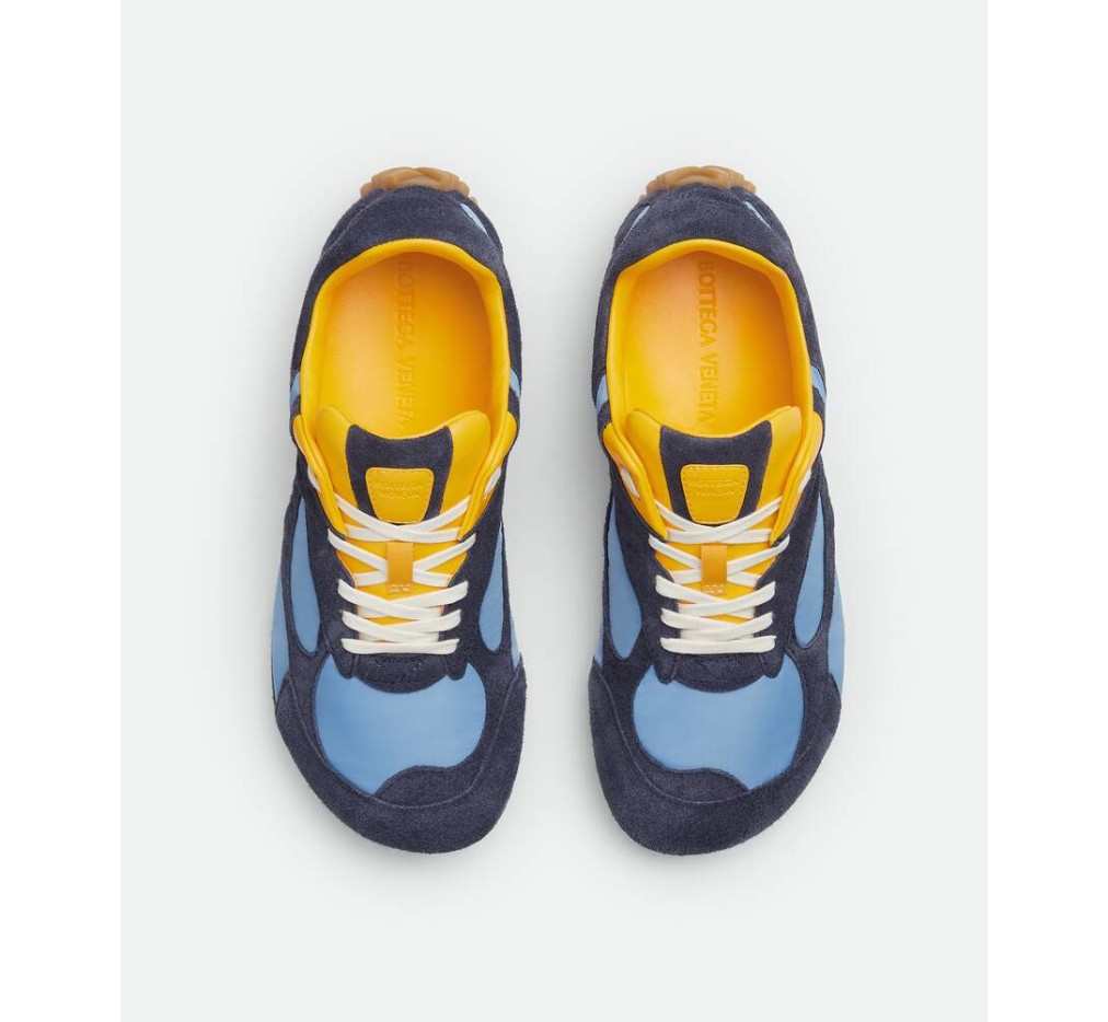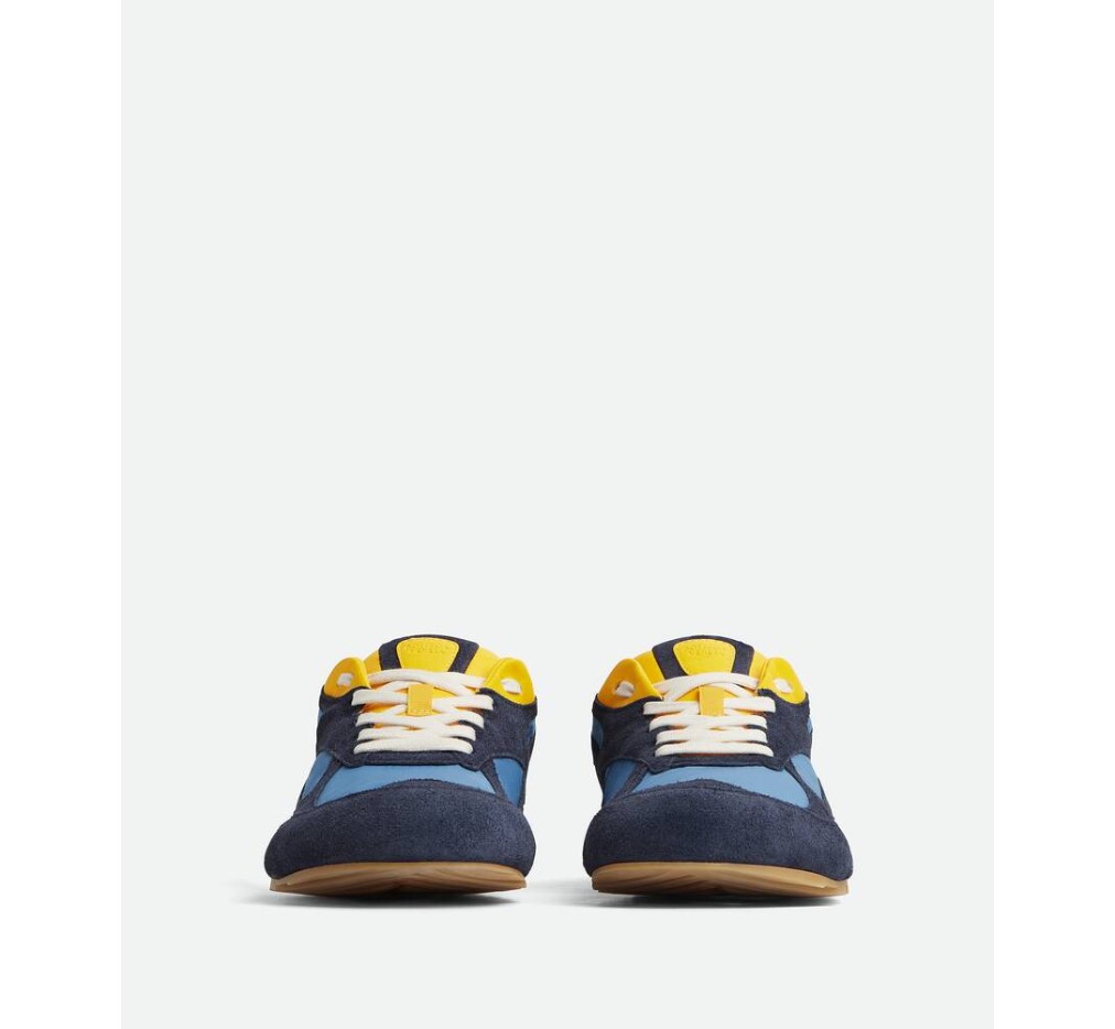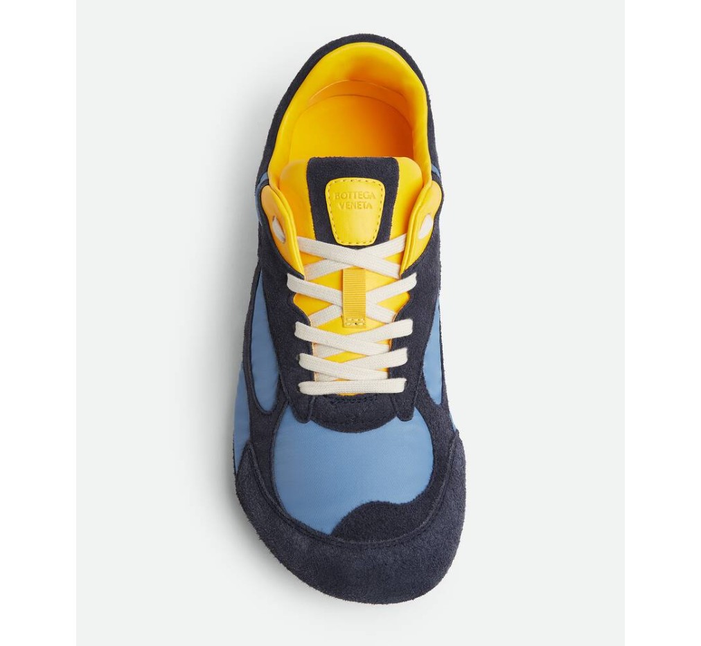 부드러운 스웨이드와 가벼운 나일론 소재의 로우탑 레이스업 스니커즈.
