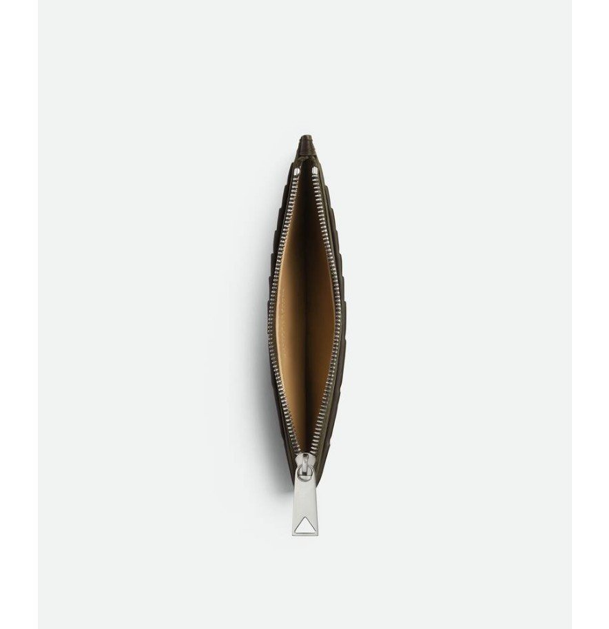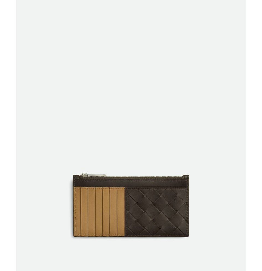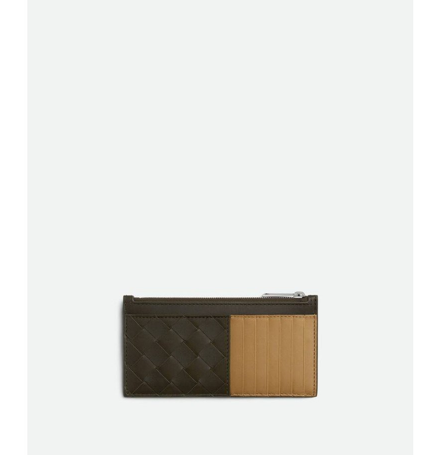 대조적인 내부를 갖춘 인트레치아토 송아지 가죽 카드 케이스.