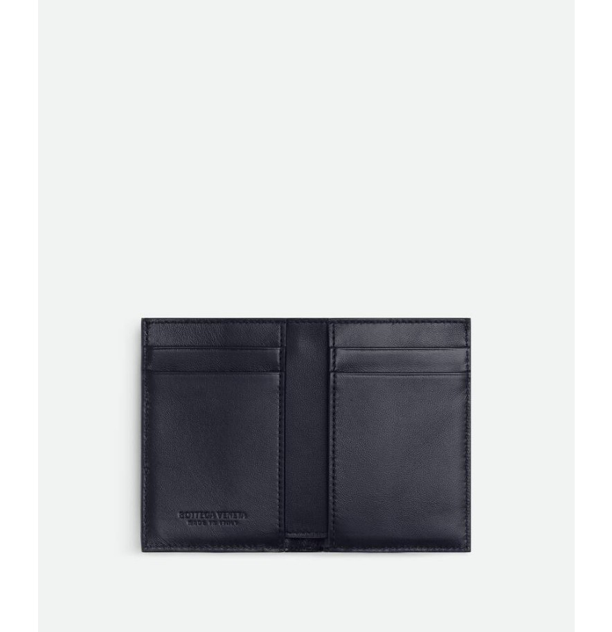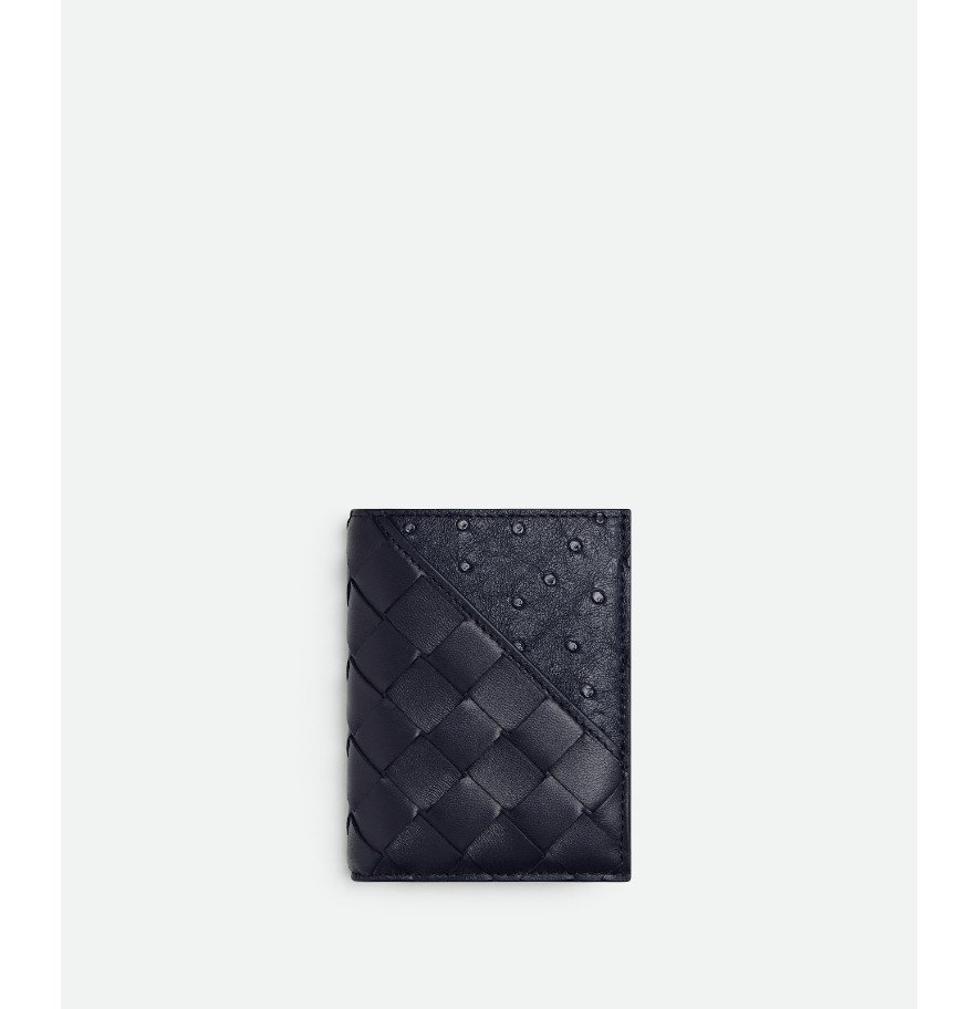 대각선 디테일과 타조 가죽 인서트가 들어간 인트레치아토 나파 가죽 소재의 플랩 카드 케이스입니다.