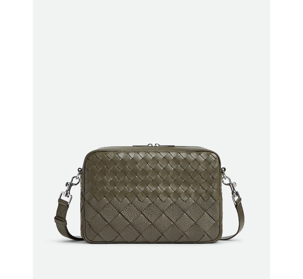 – 그레인드와 매끄러운 송아지 가죽으로 만든 인트레치아토 데그라데 크로스백