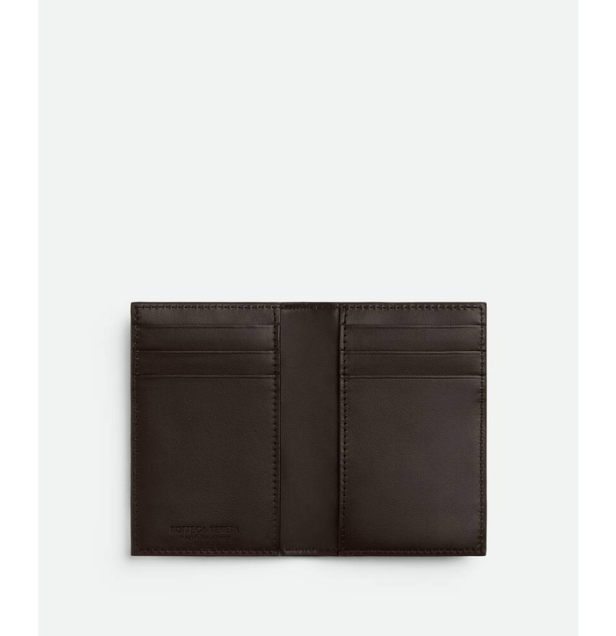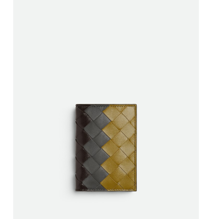 3색 패널이 들어간 인트레치아토 송아지 가죽 카드 케이스.