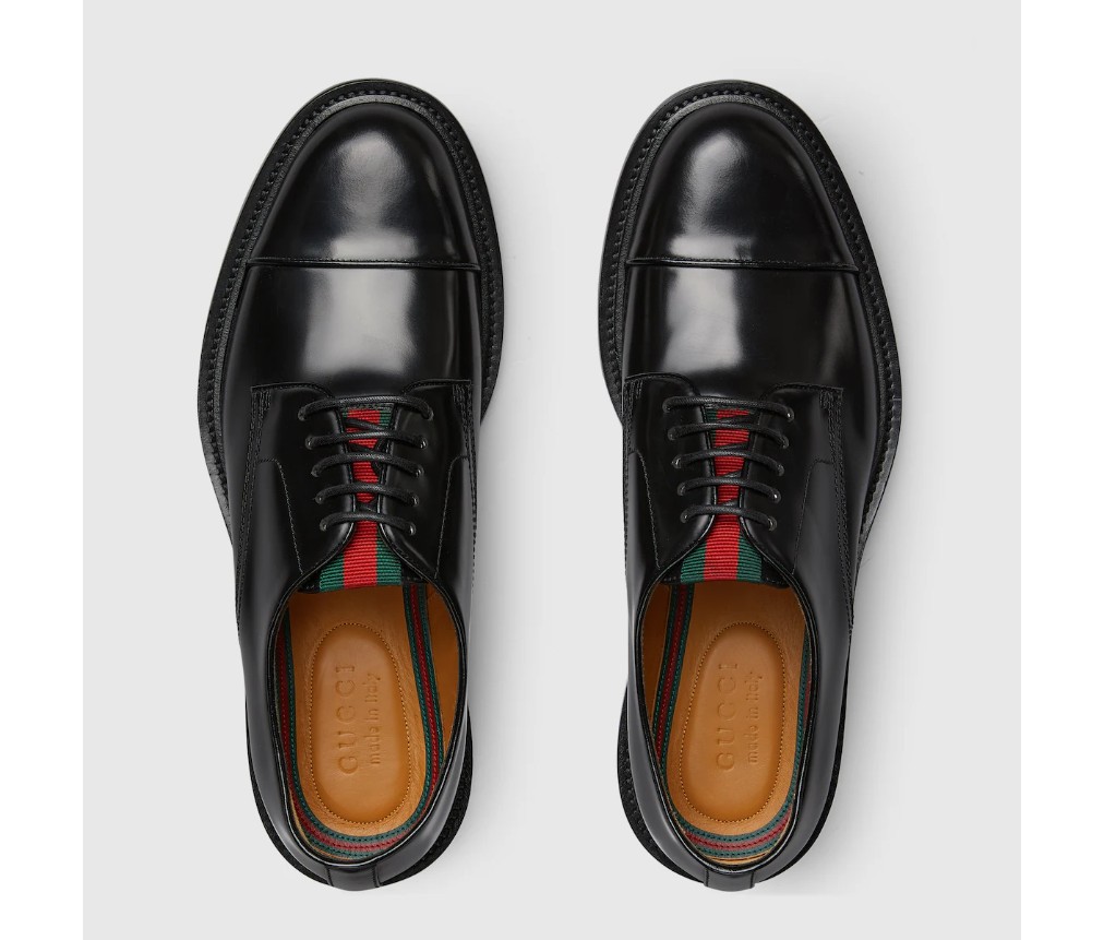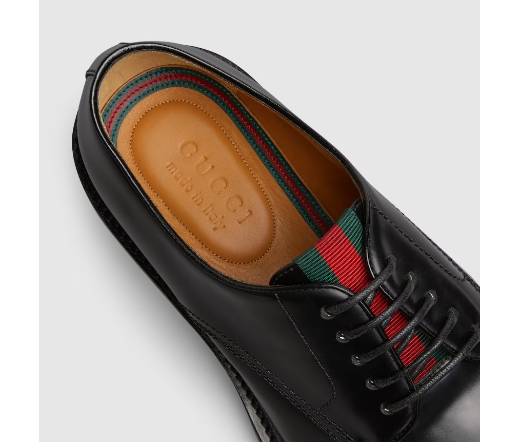 스타일 838135 AAEYE 1048정장은 매 시즌 구찌의 시각을 통해 끊임없이 재해석됩니다. 이 미니멀리스트 슈즈는 검은색 가죽으로 제작되었으며, 가죽 밑창으로 완성되었습니다.