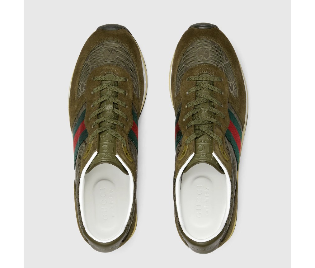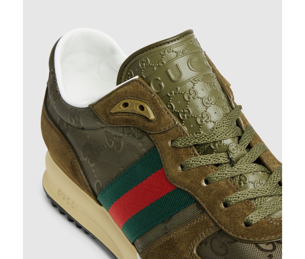 구찌 리모션 스니커즈는 클래식과 현대적인 요소가 조화를 이룹니다. 짙은 녹색 오리지널 GG 캔버스 소재에 시그니처 그린 & 레드 웹(Web) 로고가 더해져 완성도를 높였습니다. 가볍고 유연한 아웃솔은 특수 가공을 거쳐 레트로한 매력을 더했습니다.