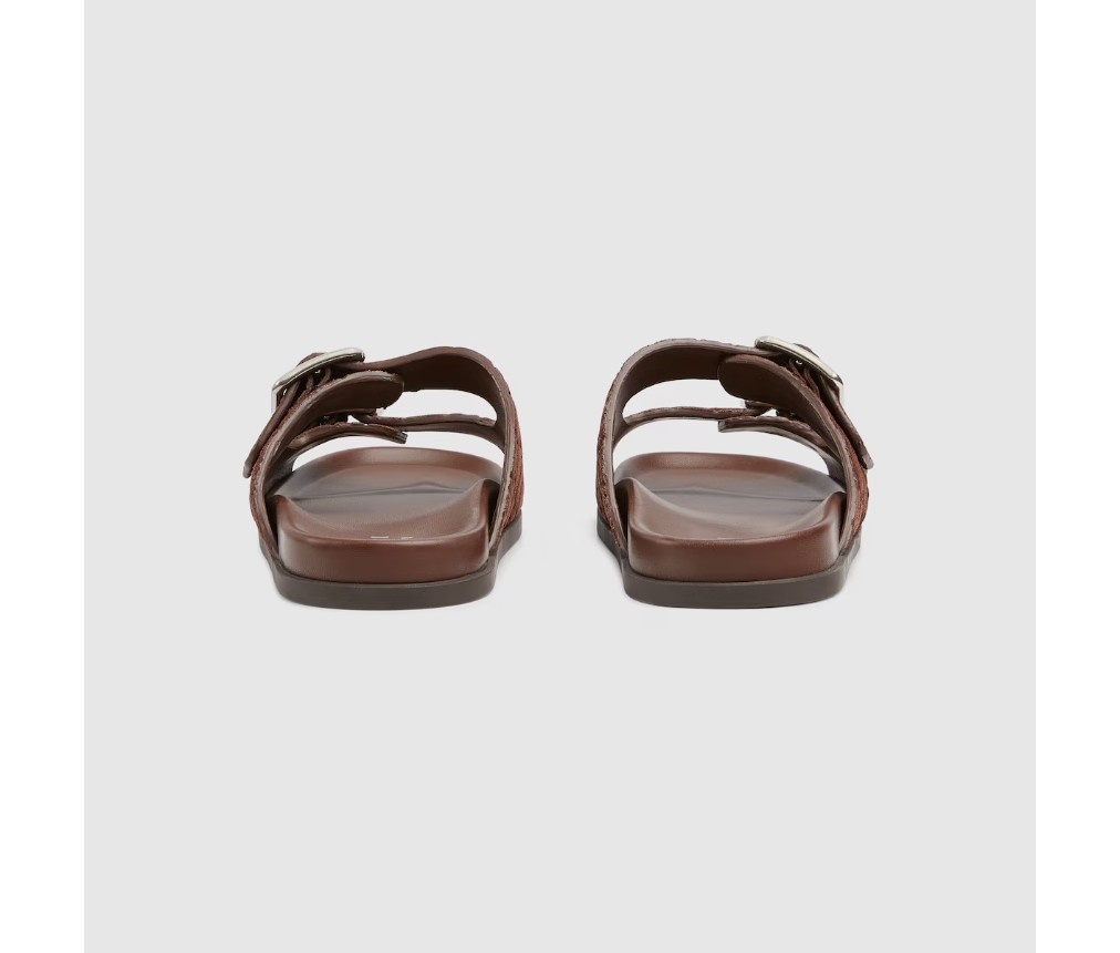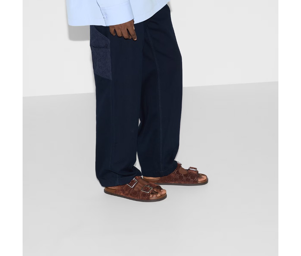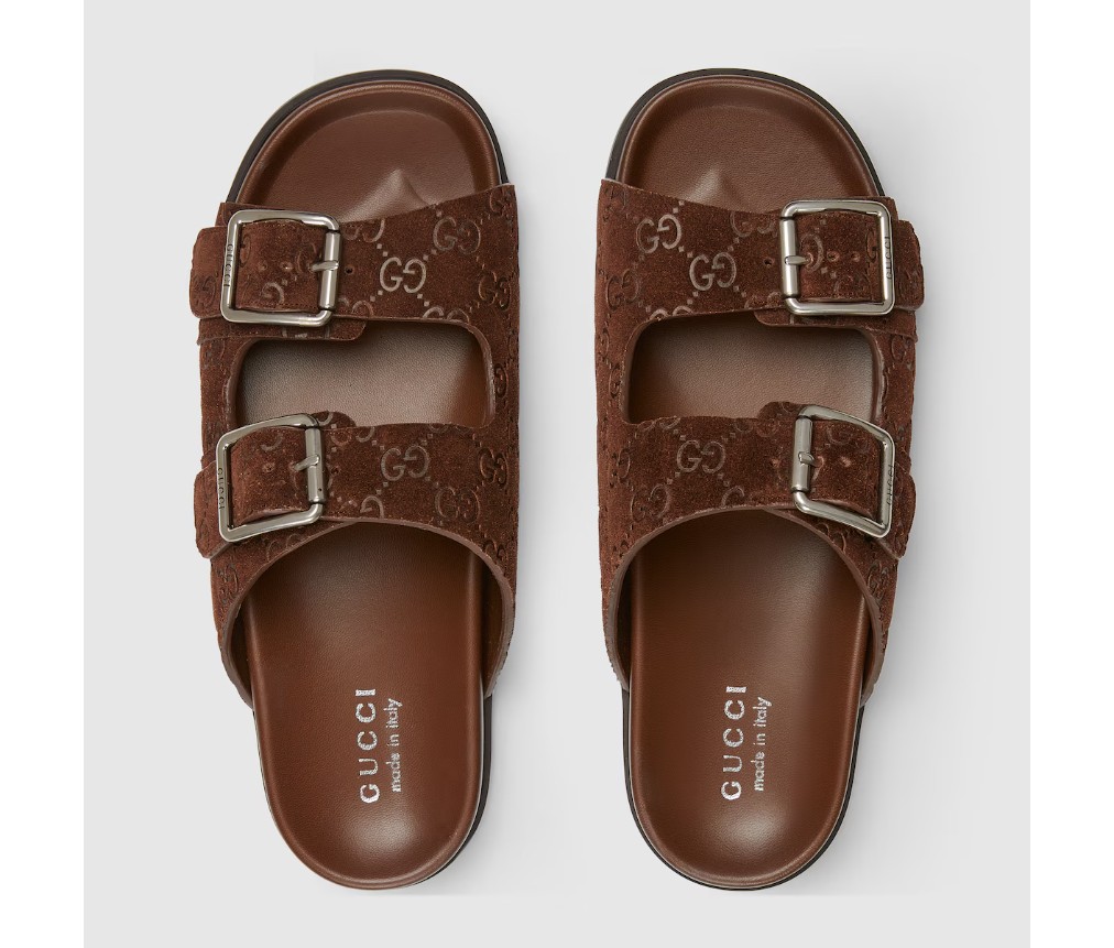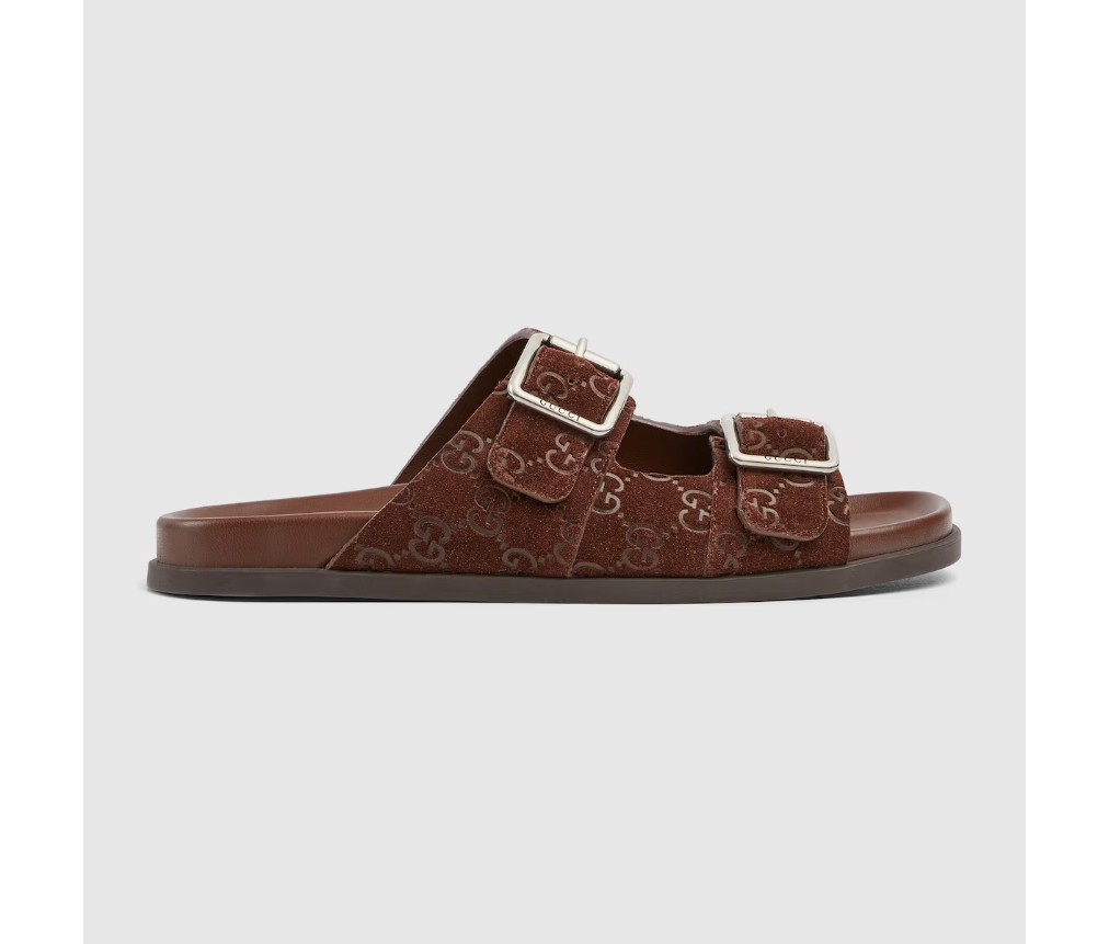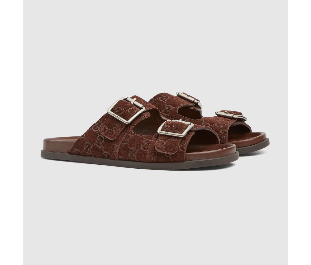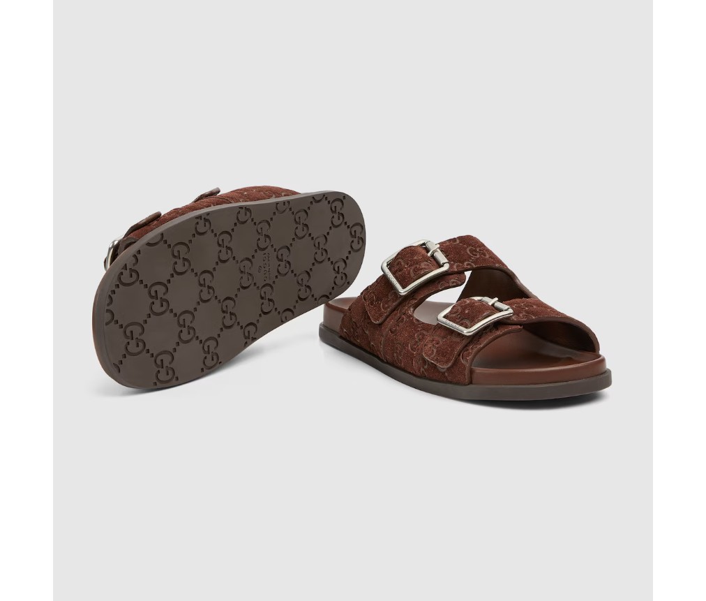 GG 로고는 아카이브 마름모꼴 디자인에서 유래되었으며, 1970년대부터 하우스의 확고한 상징으로 자리 잡았습니다. 엠보싱 처리된 GG 스웨이드 소재가 이 플랫 샌들에 세련된 느낌을 더합니다.