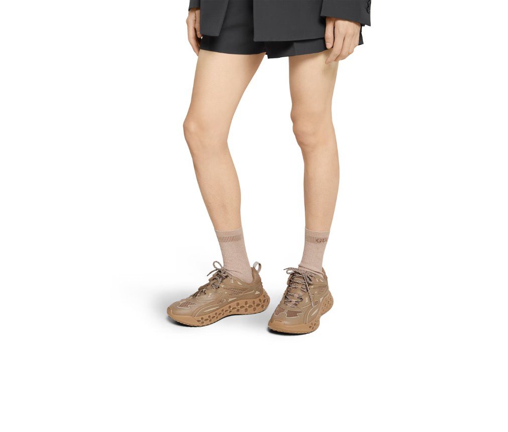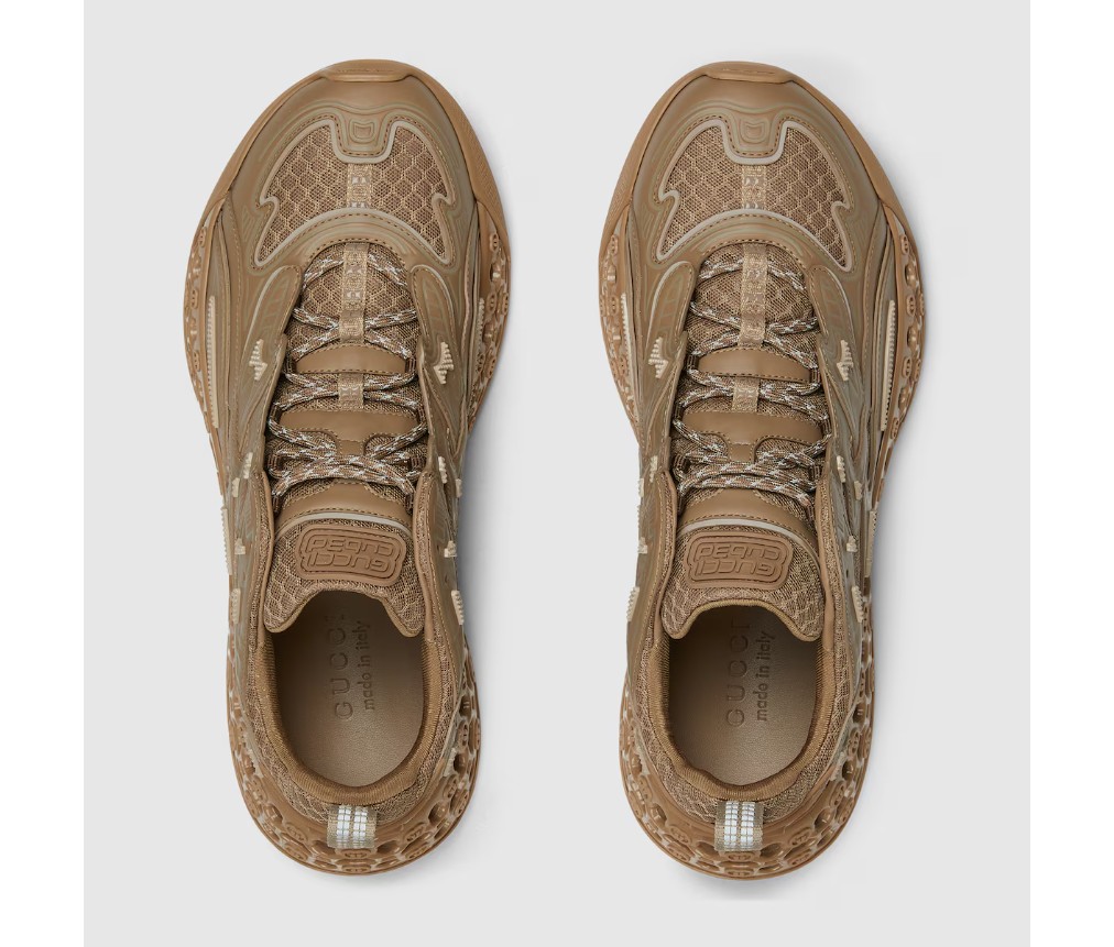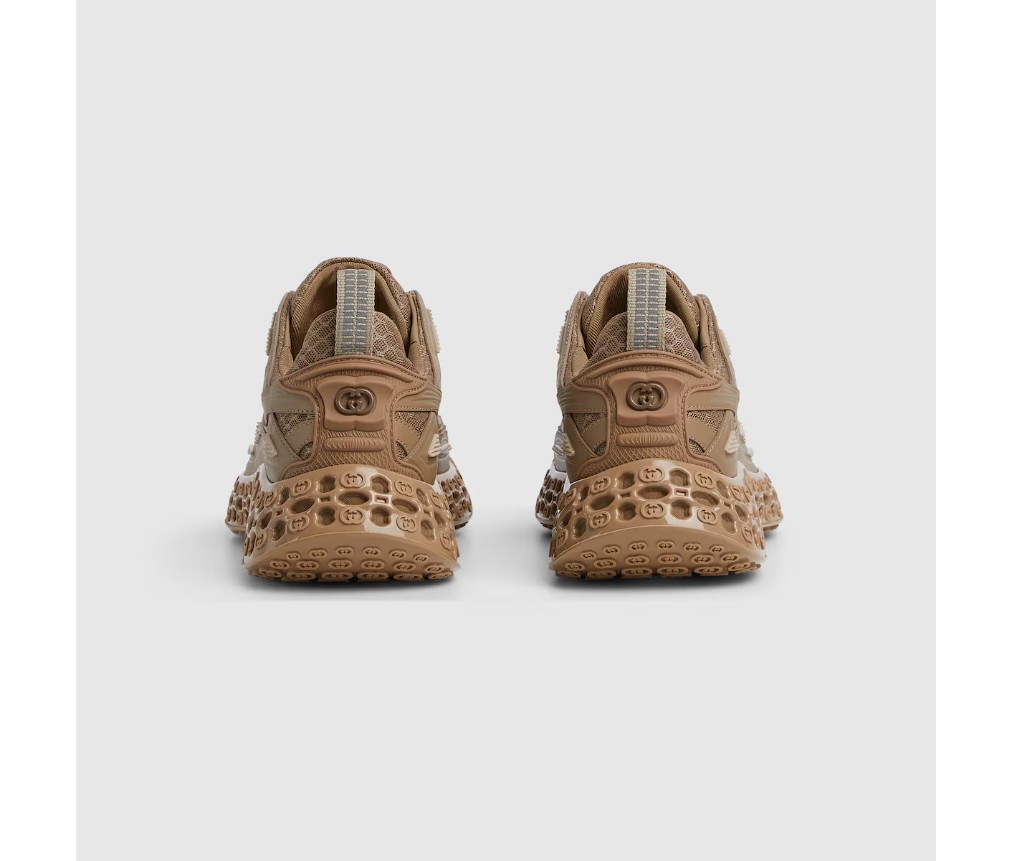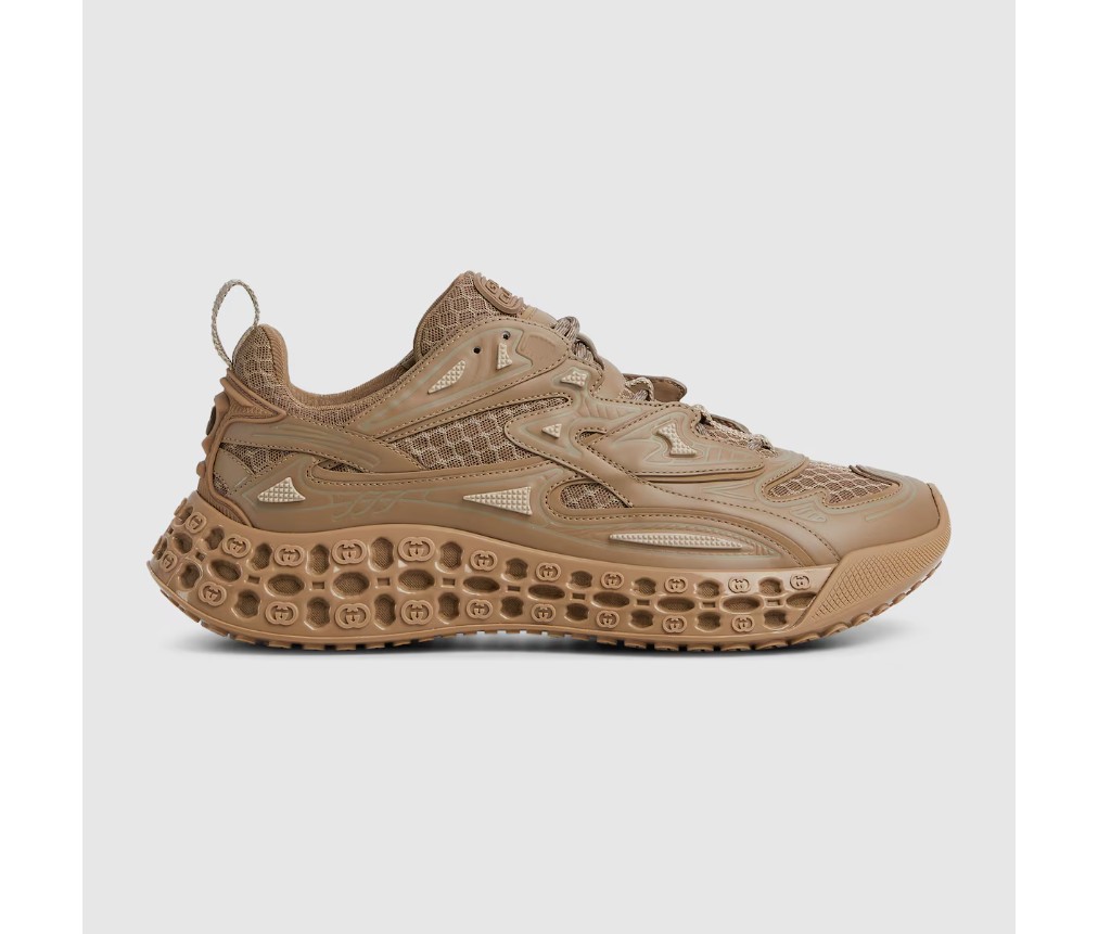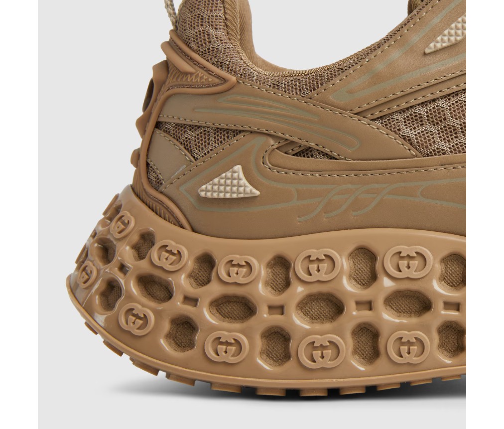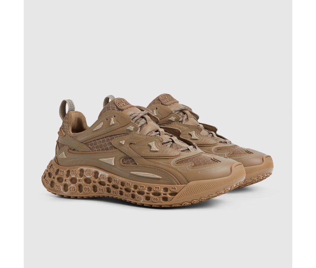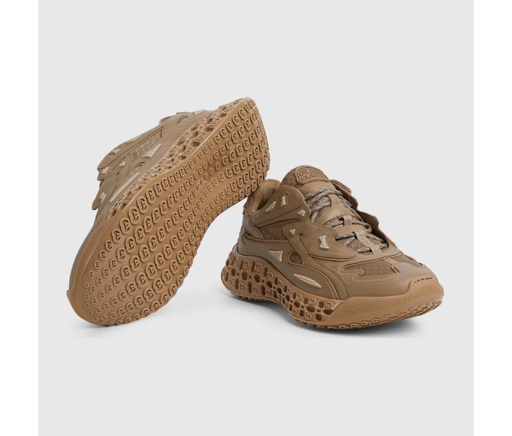 2025 봄/여름 컬렉션에서 선보이는 구찌 cub3d 트레이너는 혁신적인 소재와 구조를 결합했습니다. 갑피는 데메트라(Demetra) 소재와 메시 소재를 결합하여 고주파 기법으로 제작된 디테일을 특징으로 하며, 밑창은 EVA 소재의 내부와 TPU 소재의 외부를 결합하여 3D 인터로킹 G 패턴으로 완성되었습니다.