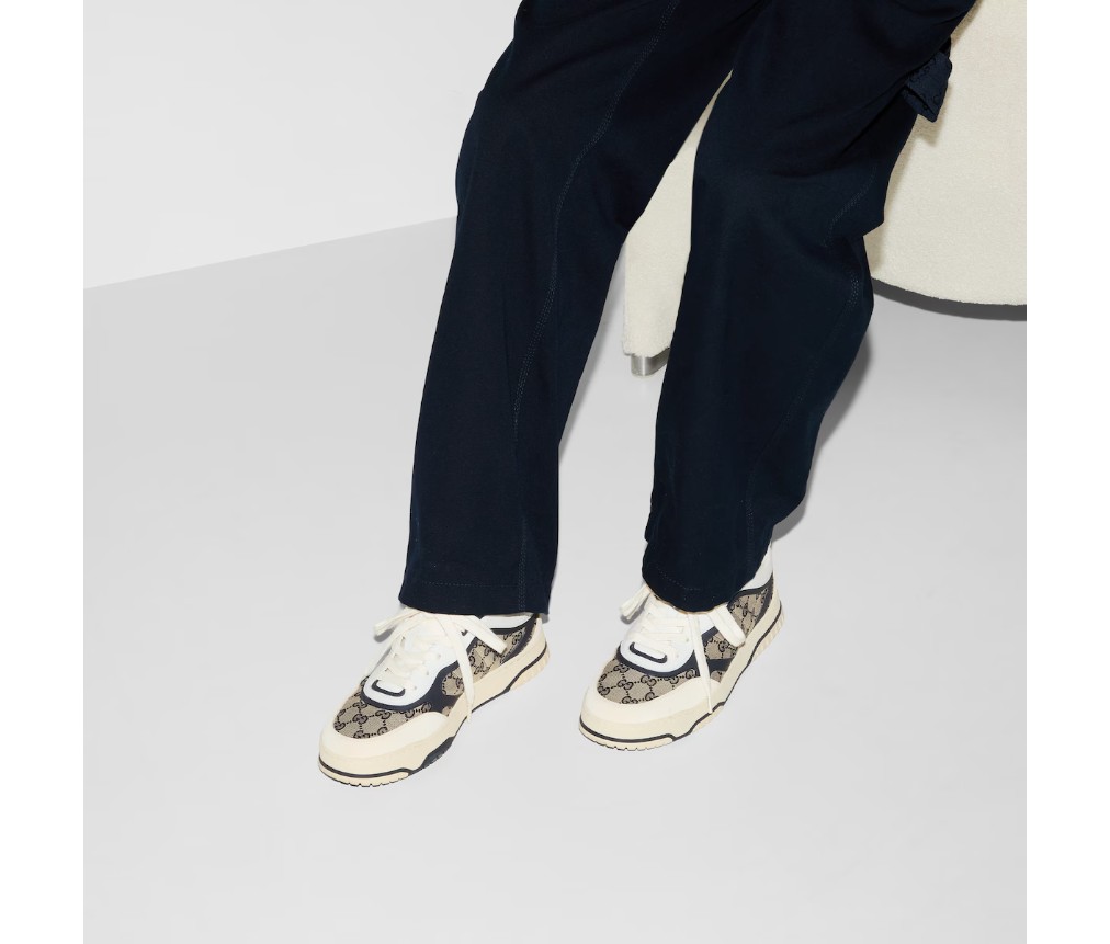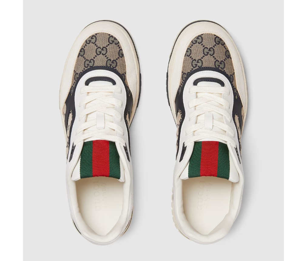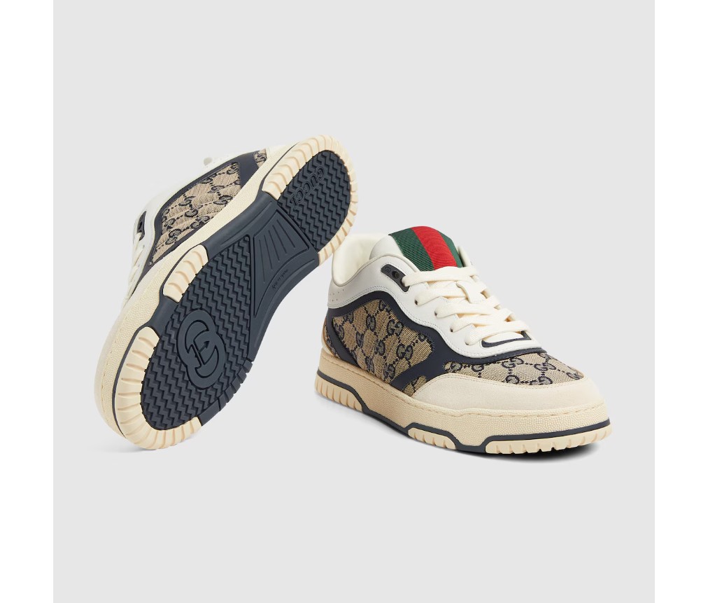 리웹(Re-Web)은 구찌의 헤리티지 스트라이프를 현대적인 실루엣에 대담한 포인트 디테일로 표현했습니다. 시그니처 디테일이 돋보이는 이 스니커즈는 베이지와 블루 컬러의 오리지널 GG 캔버스 소재에 그린과 레드 컬러의 웹(Web) 텅으로 마감되었습니다.