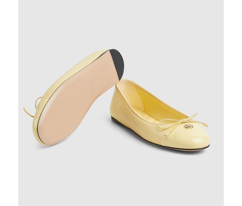 이 우아하고 시대를 초월하는 발레 플랫은 부드러운 가죽 소재에 에나멜 토 캡이 적용되었습니다. 섬세한 리본 장식이 여성스러운 분위기를 더하고, 밝은 골드 톤의 더블 G 장식은 하우스의 가장 유명한 상징 중 하나인 로베르토 로베르토를 은은하게 표현합니다.