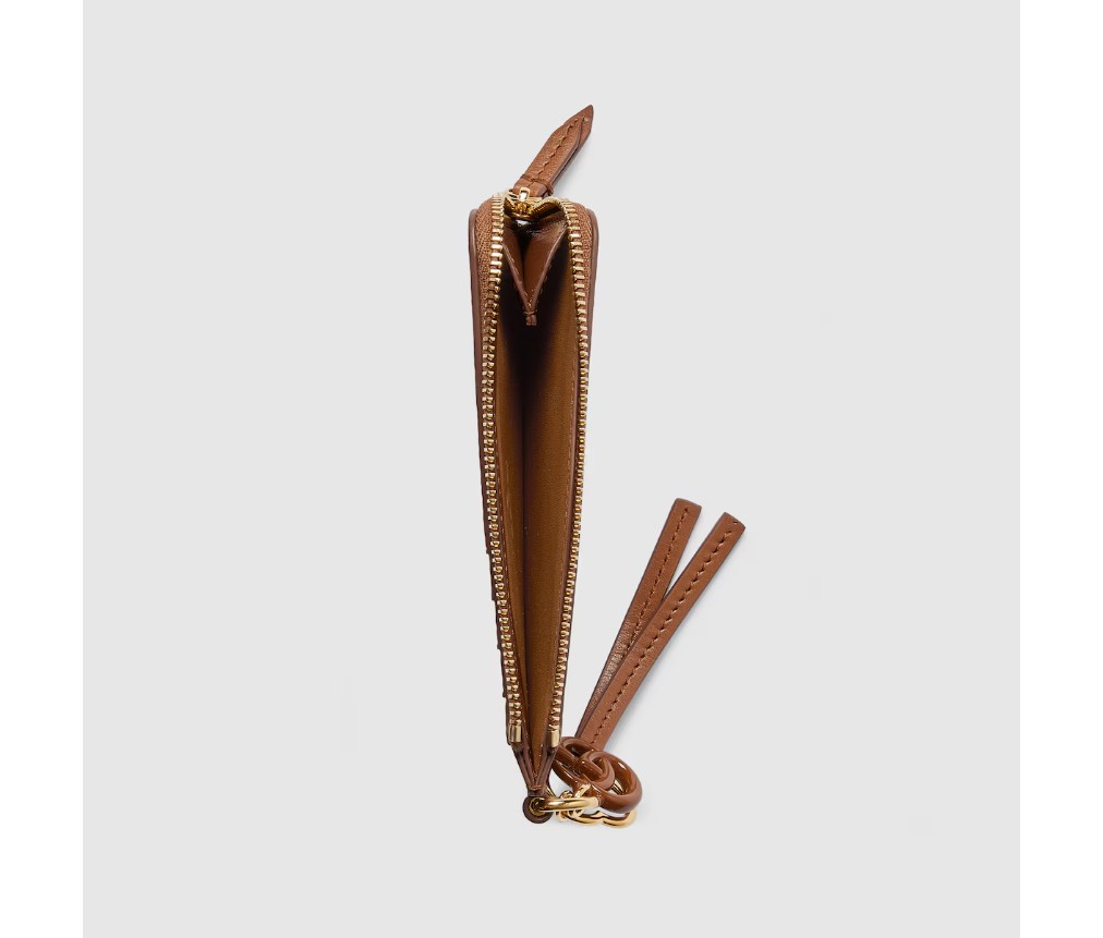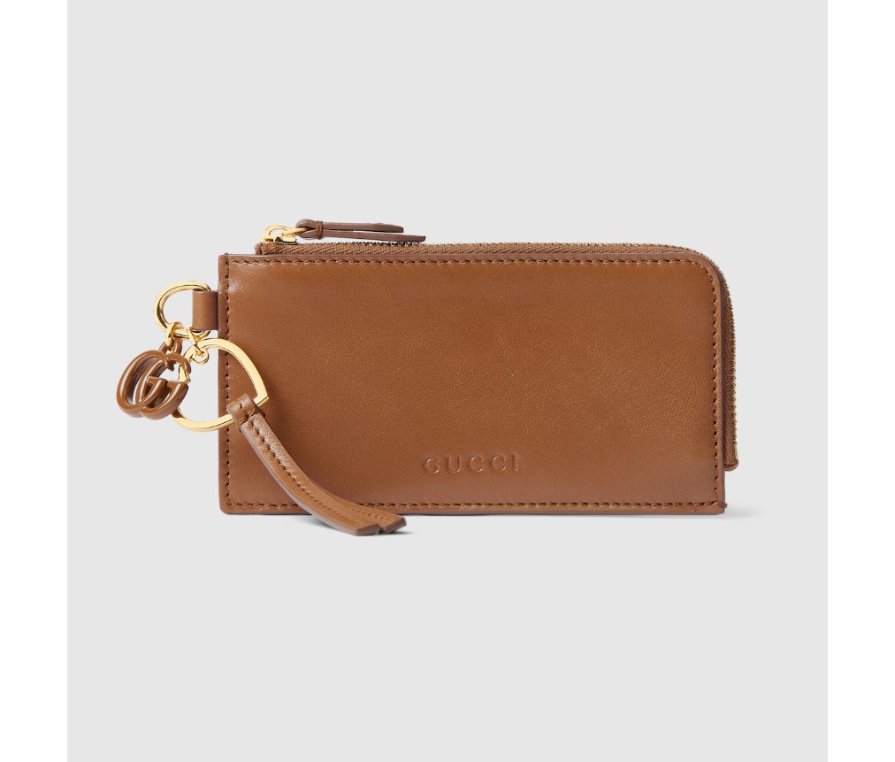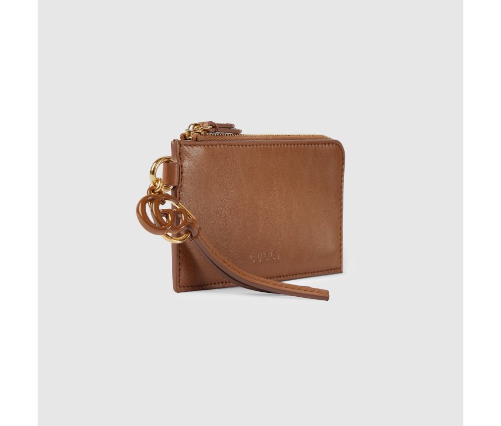 2025년 가을 겨울 컬렉션의 일부인 이 카드는 더블 G 가죽 매력으로 완성되었으며, 뒷면에 카드 슬롯 5개와 내부에 동전 포켓이 있어 기능성이 더욱 강화되었습니다.