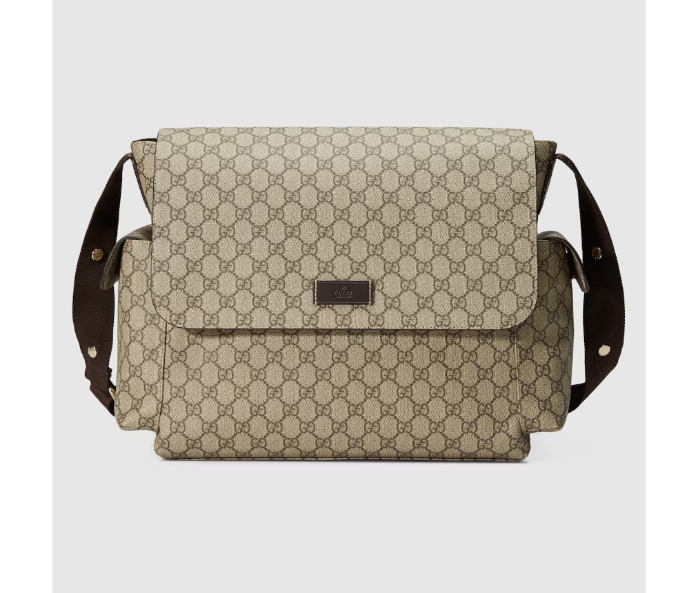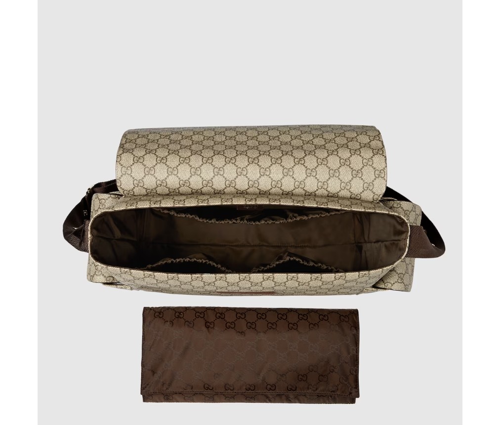 스타일 211131 KGDIG 8588GG SUPREME 캔버스 기저귀 가방은 여러 개의 포켓과 접이식 기저귀 교환 매트로 디자인되었습니다.