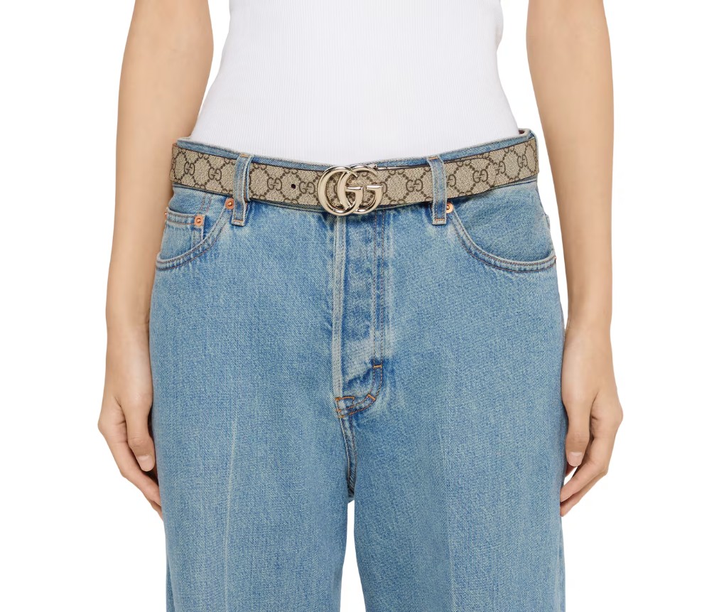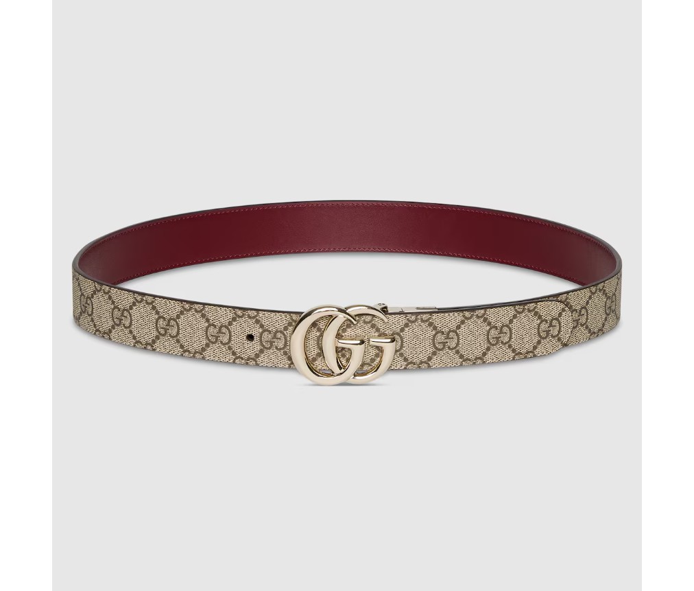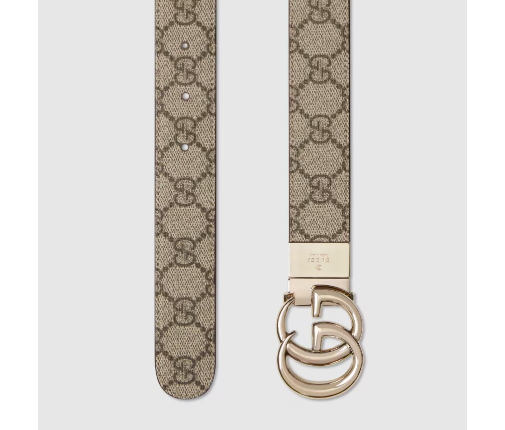 이 양면 벨트는 2025 프리폴 컬렉션의 일부로 출시되었습니다. 하우스의 유산에서 영감을 받아 GG 수프림과 가죽 소재로 제작되었습니다. 연한 골드 톤의 더블 G 버클이 이 벨트를 더욱 돋보이게 합니다.
