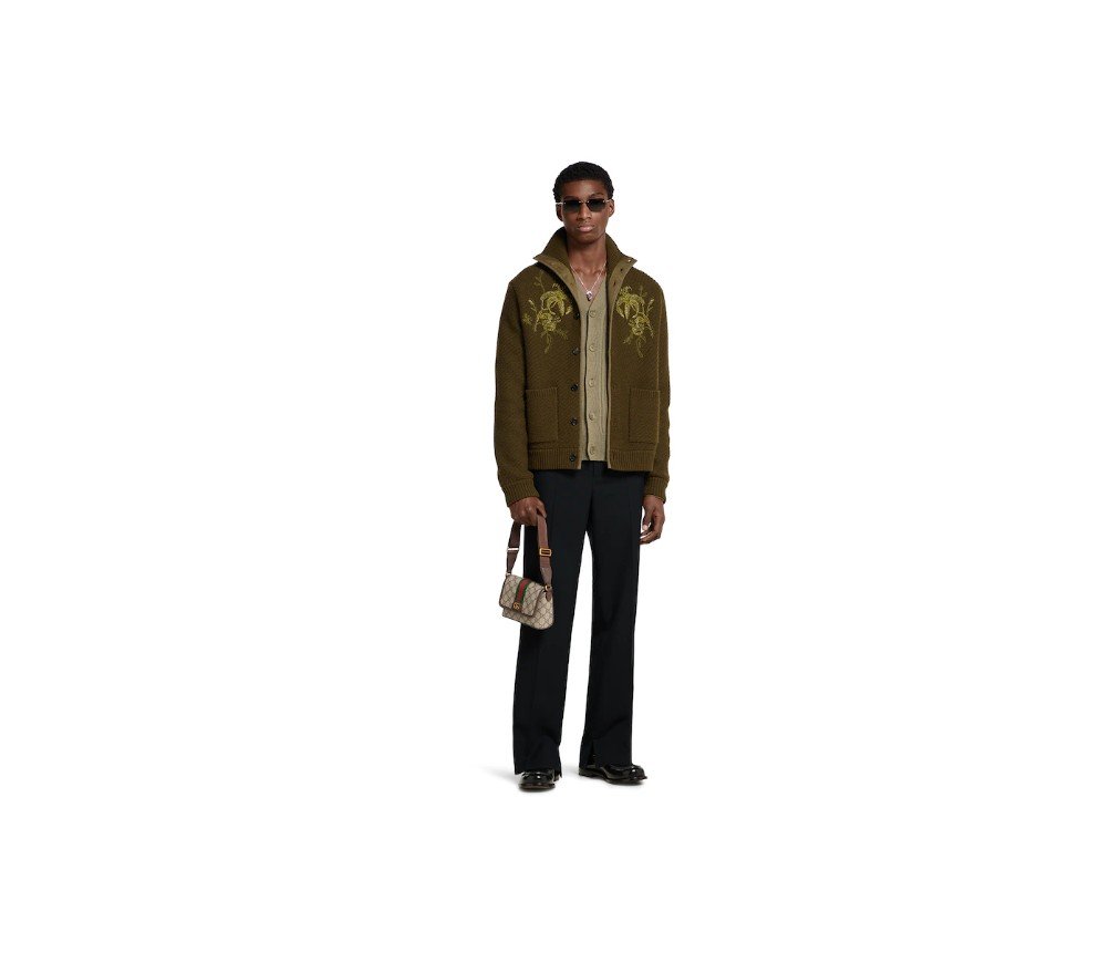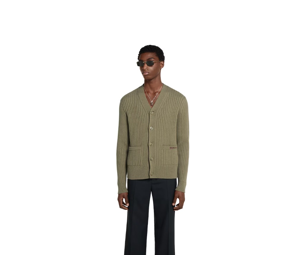 구찌 리브 울 캐시미어 니트 카디건 824500XKERW3022