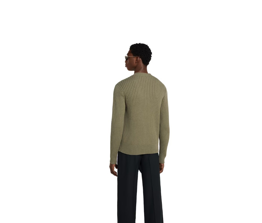 2025 프리폴 컬렉션은 데이웨어부터 이브닝 웨어까지, 상징적인 디테일이 돋보이는 에센셜 실루엣을 선보입니다. 이 가디건은 옅은 녹색 리브 울 캐시미어 니트 소재로 제작되었으며, 구찌 인타르시아 장식이 특징입니다.