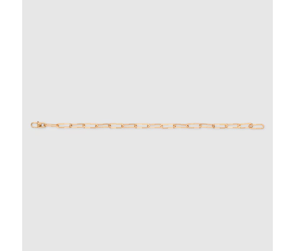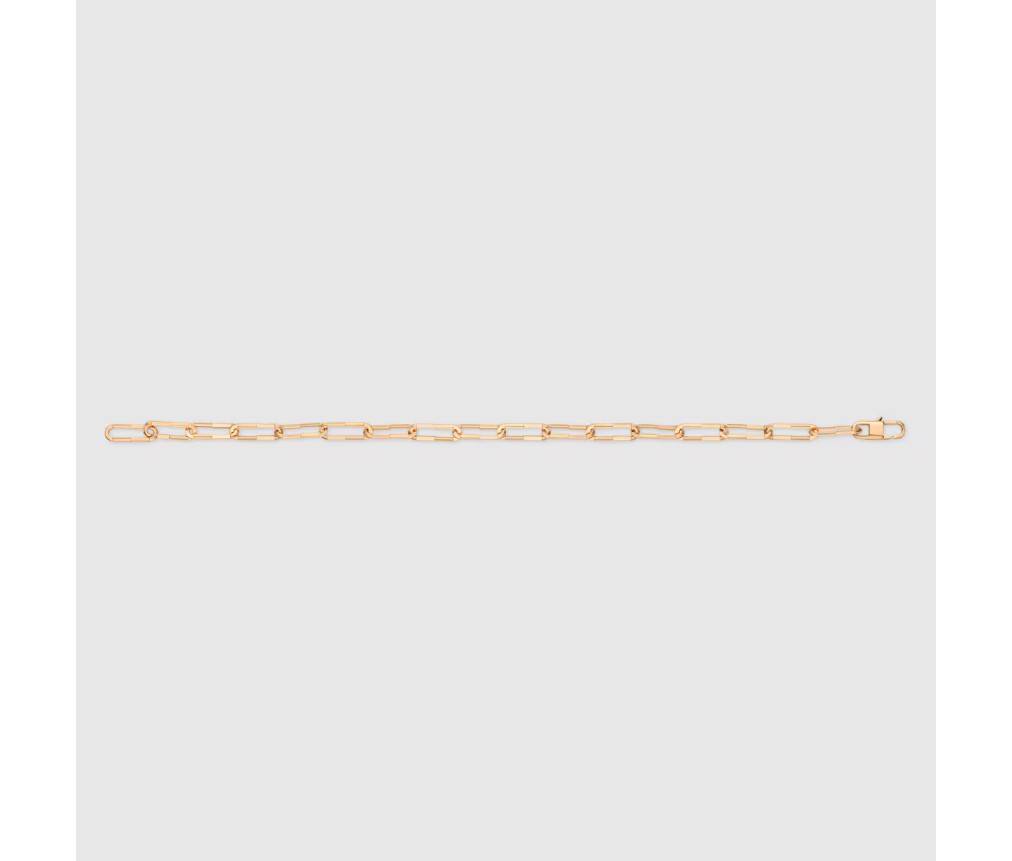 밴드와 후프 이어링에는 로즈 골드 또는 화이트 골드 소재의 바게트 컷과 트릴리언트 컷 다이아몬드가, 링과 후프 이어링에는 옐로 골드, 화이트 골드와 로즈 골드가 믹스된 디자인이 적용된 등, 구찌 링크 투 러브 컬렉션의 모든 제품은 다채로운 스타일링을 선사합니다. 이 브레이슬릿은 로즈 골드 소재로 제작되었습니다.