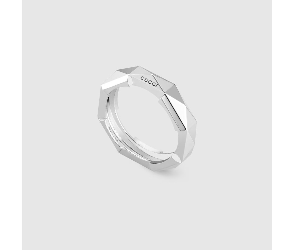 구찌 링크 투 러브 컬렉션은 현대적인 로맨스를 탐구하며 새로운 사랑의 상징을 제시합니다. 다양한 골드 톤과 다양한 마감이 어우러져 남성성과 여성성의 경계를 허물고 있습니다. 각 제품은 레이어드하거나 겹쳐 착용할 수 있는 디자인으로 개성 있는 스타일을 연출합니다. 18K 화이트 골드 스터드 링은 레이어드 기능을 갖추고 있습니다.