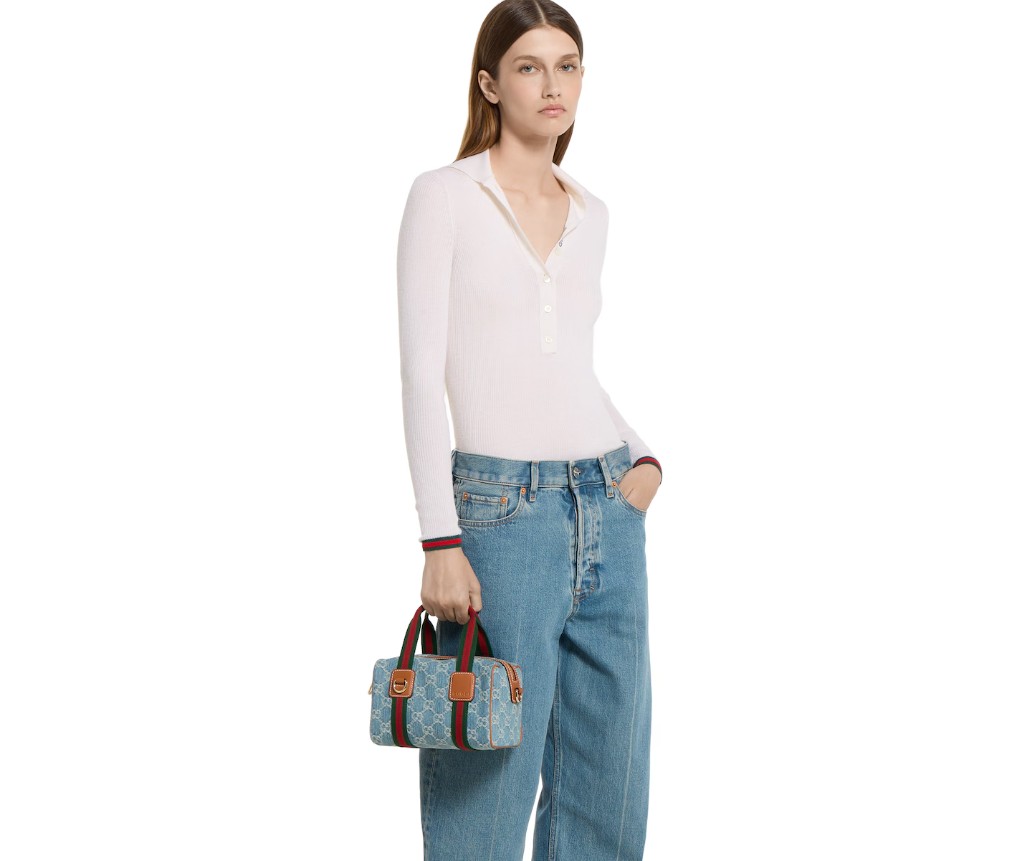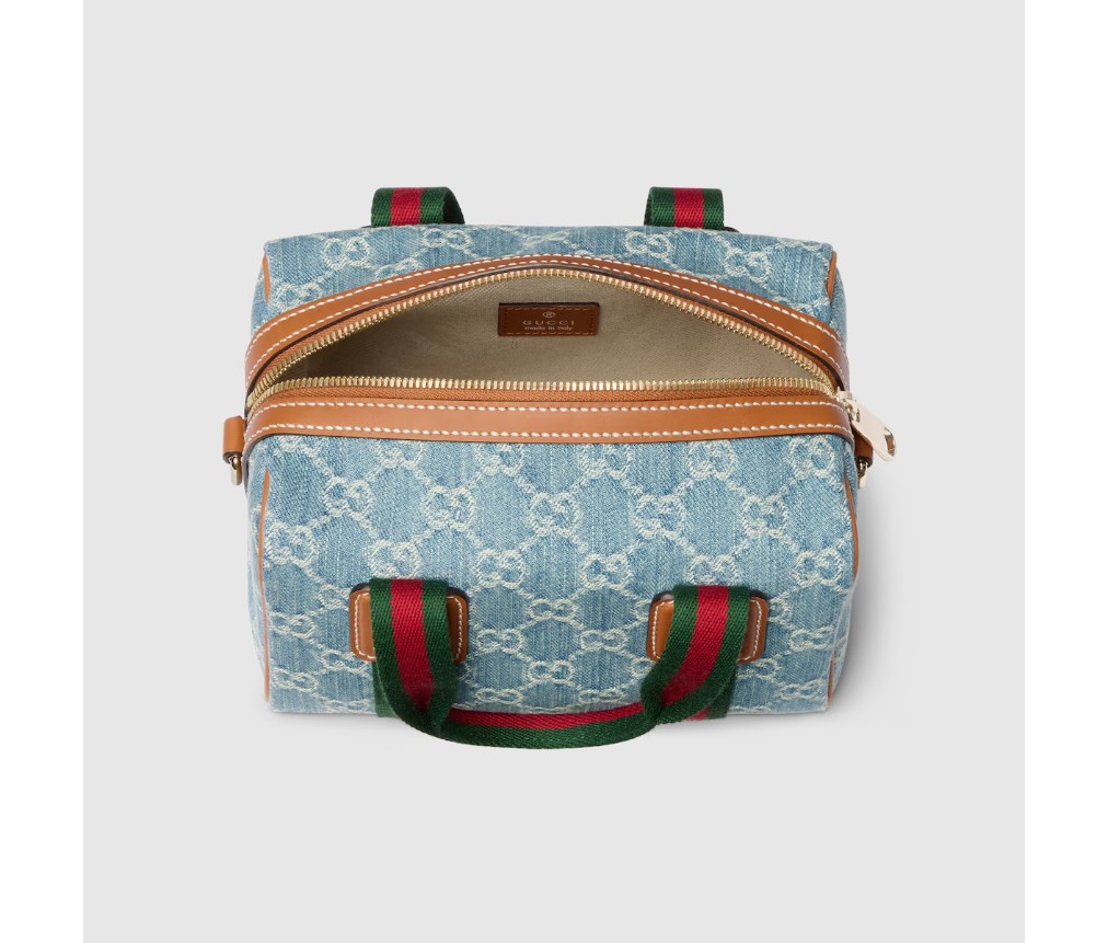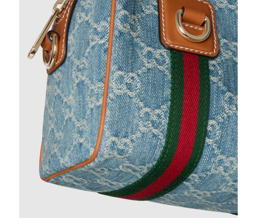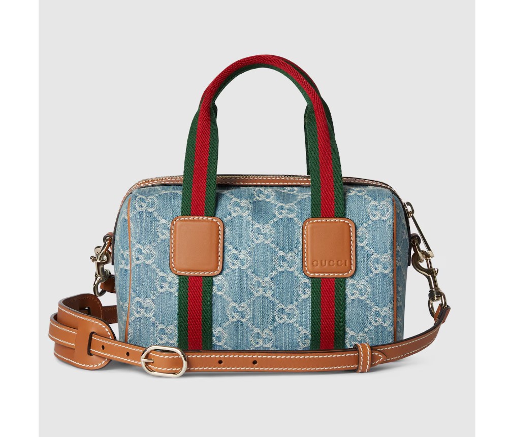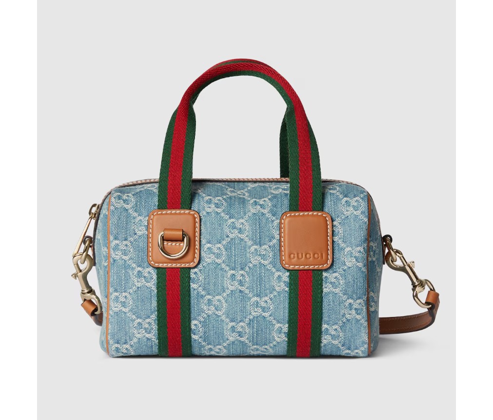 스타일 859975 FAFTZ 8661구찌의 시그니처 더플 실루엣에서 영감을 받은 미니 GG 핸드백을 선보입니다. 데님 소재에 웹 스트라이프 핸들과 탈부착 가능한 스트랩이 특징인 이 스타일은 구찌의 코드를 재해석하고 여행의 전통을 기념합니다.