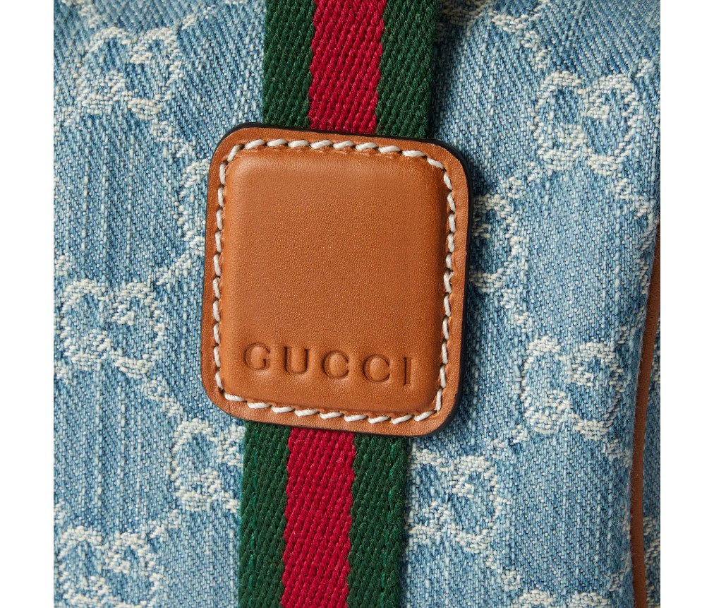 – 블루 앤 화이트 GG 데님– 브라운 가죽 트림