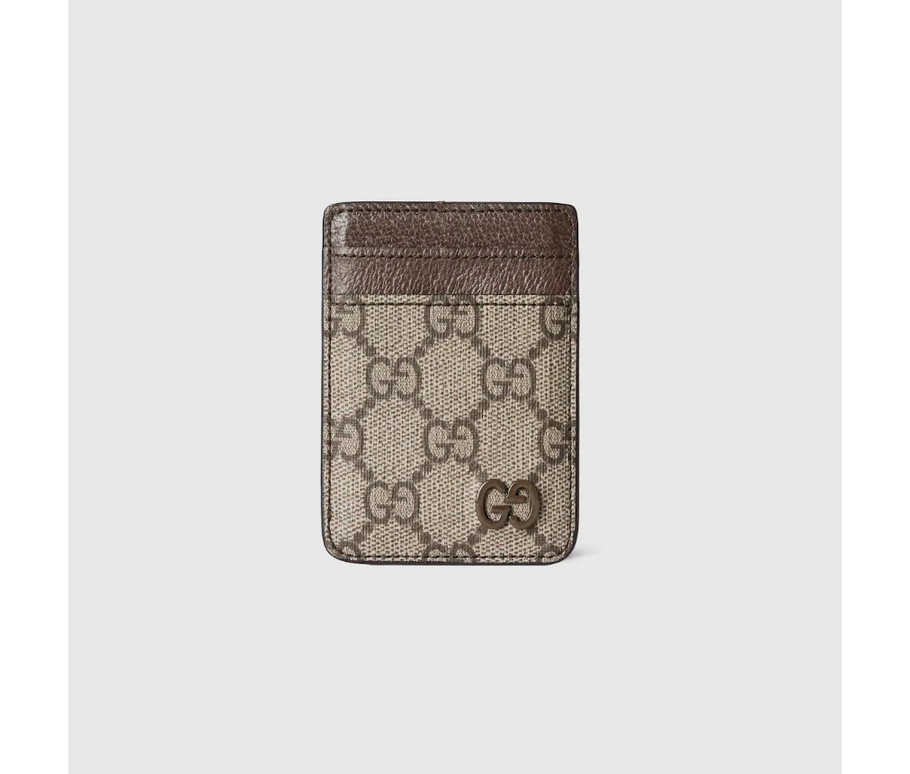 스타일 817197 FAQ 9773얇고 컴팩트한 스몰 가죽 제품은 최신 컬렉션에서 GG 로고와 바이컬러 디자인을 통해 새로운 색상을 강조합니다. 두 개의 슬롯이 있는 이 자석 카드 케이스는 베이지색과 진한 갈색 GG SUPREME 캔버스로 출시되었으며, 부드러운 갈색 가죽 트림과 동일한 톤의 GG 하드웨어로 완성되었습니다.