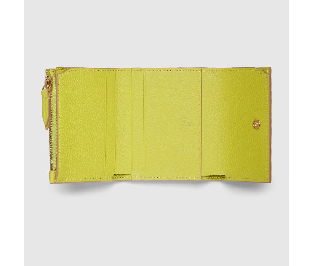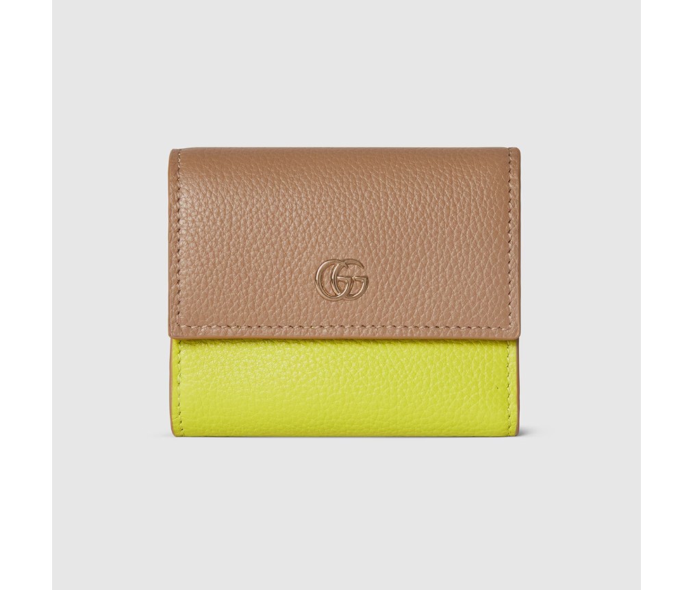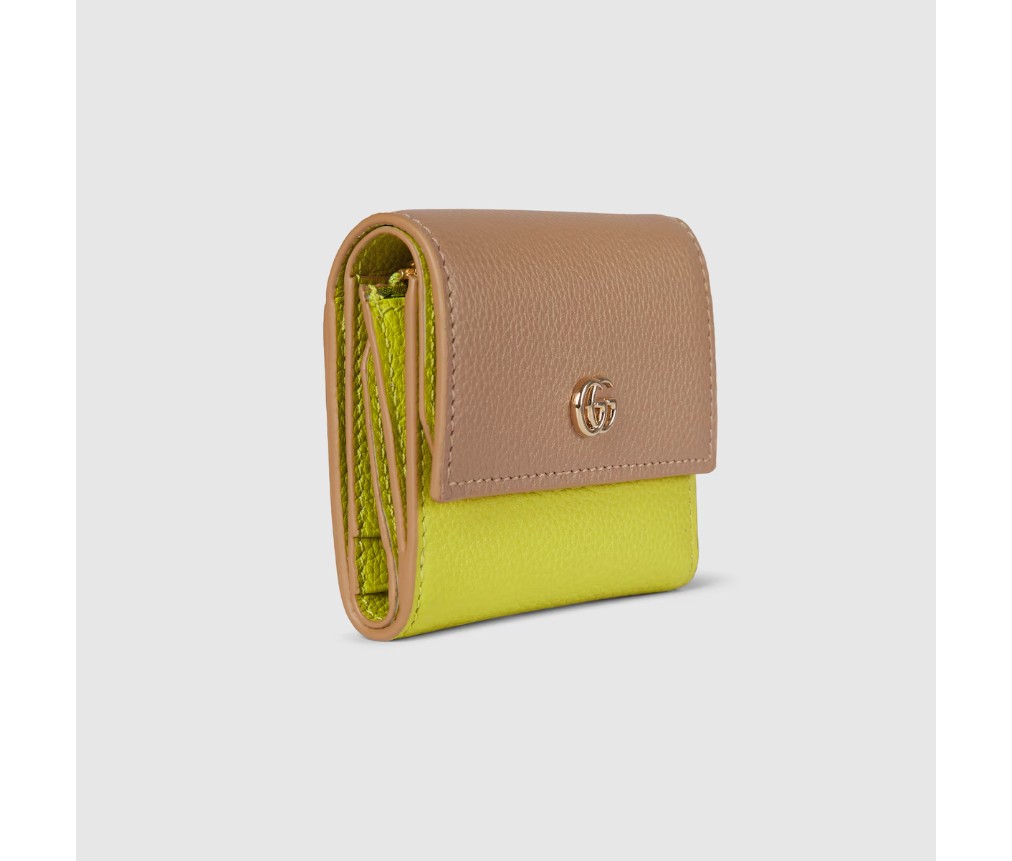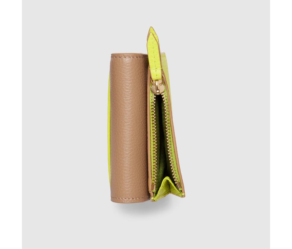GG 마몽은 다채로운 디자인으로 시그니처 실루엣에 새로운 기능을 더했습니다. 베이지와 밝은 그린 색상의 투톤 미니 지갑은 더블 G 디테일로 더욱 풍성하게 완성되었습니다.