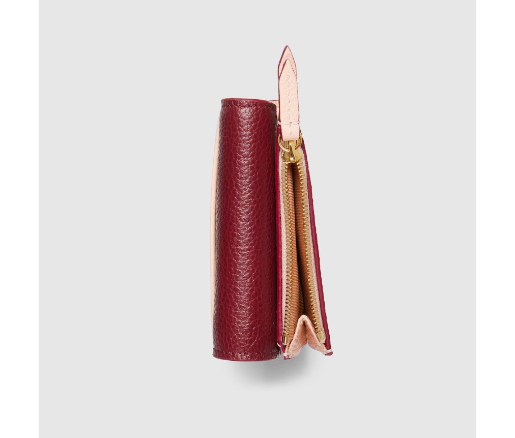 GG 마몽은 다채로운 디자인으로 시그니처 실루엣에 새로운 기능을 더했습니다. 이 투톤 미니 지갑은 구찌 로소 앙코라 레드와 핑크 가죽 소재에 더블 G 디테일을 더해 더욱 풍성하게 선보입니다.
