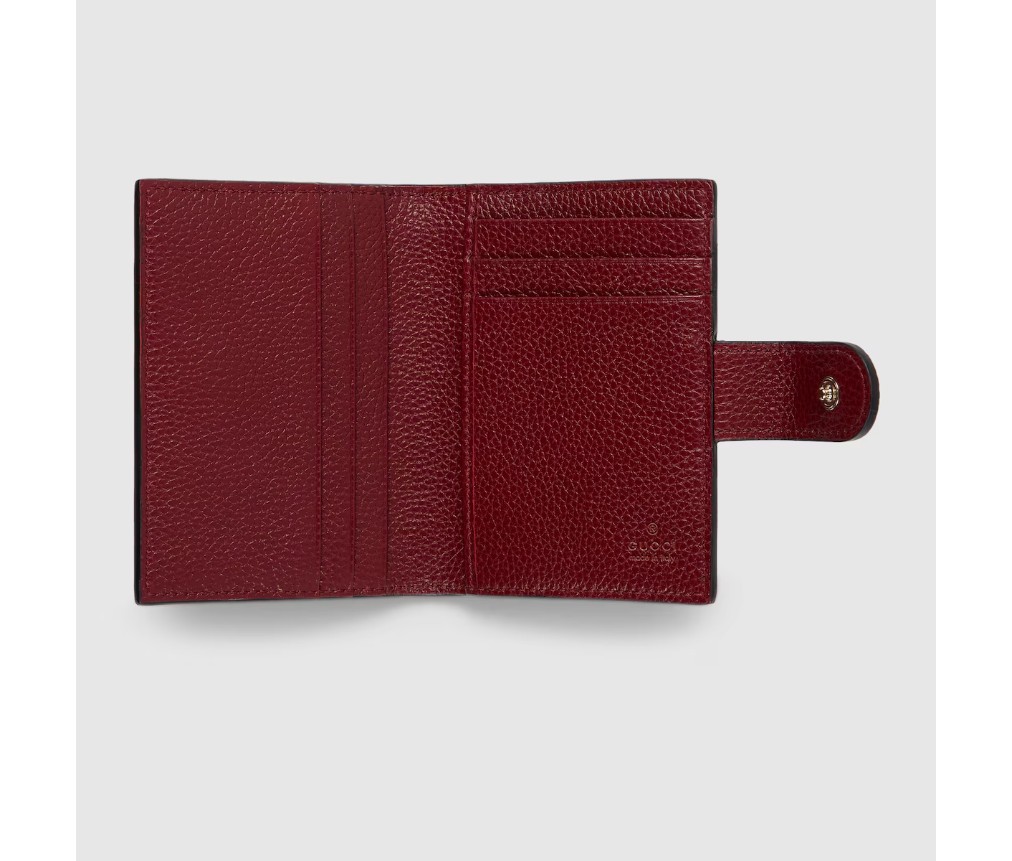 스타일 855484 AAFXL 1062GG 마몬트 컬렉션에서 투톤 스타일을 선보입니다. 블랙 가죽에 구찌 로소 안코라 레드 가죽으로 대비를 이루는 내부가 돋보이는 이 카드 케이스는 연한 골드 톤 마감의 시그니처 더블 G 하드웨어가 특징입니다.