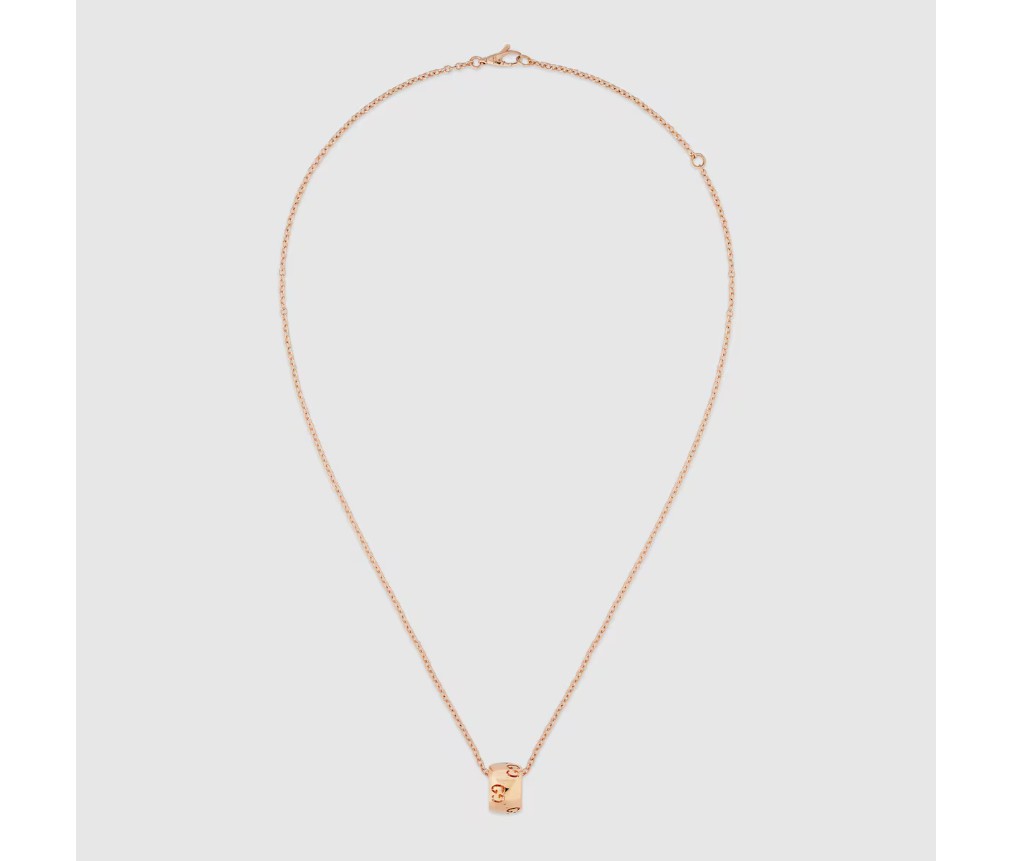2024 가을/겨울 컬렉션을 위해 아이콘 주얼리 컬렉션은 둥근 실루엣에 새로운 GG 컷아웃 모티프를 선보입니다. 18k 로즈 골드 소재의 이 목걸이 위에는 하우스의 시그니처 모티프가 펜던트로 장식되어 있습니다. 목걸이는 길이 조절이 가능하여 편안하게 착용할 수 있습니다.