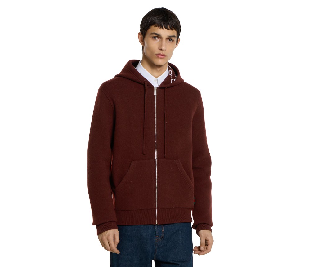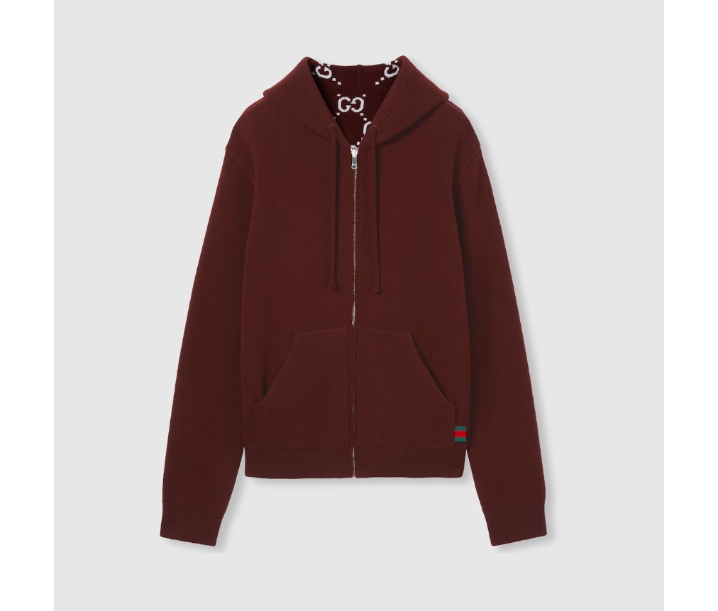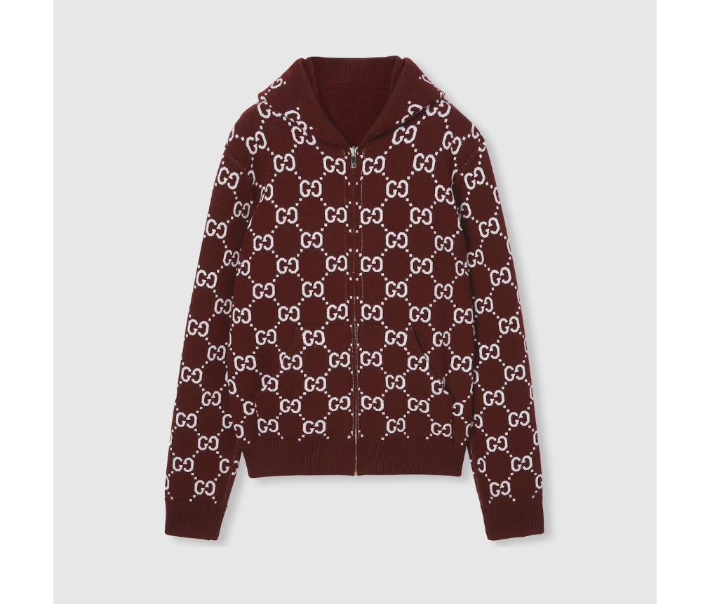 – 한 면은 버건디 울 니트, 다른 면은 GG 울 자카드