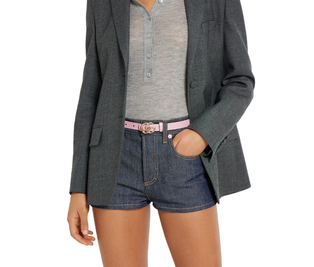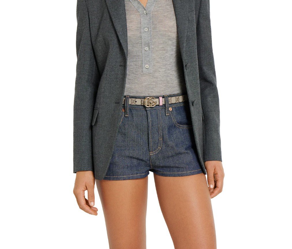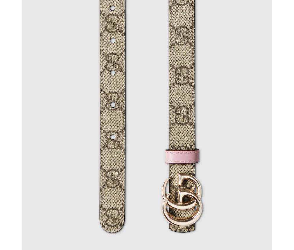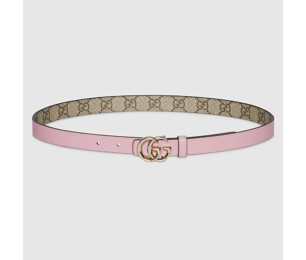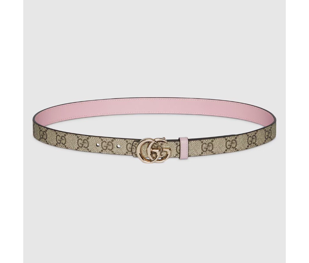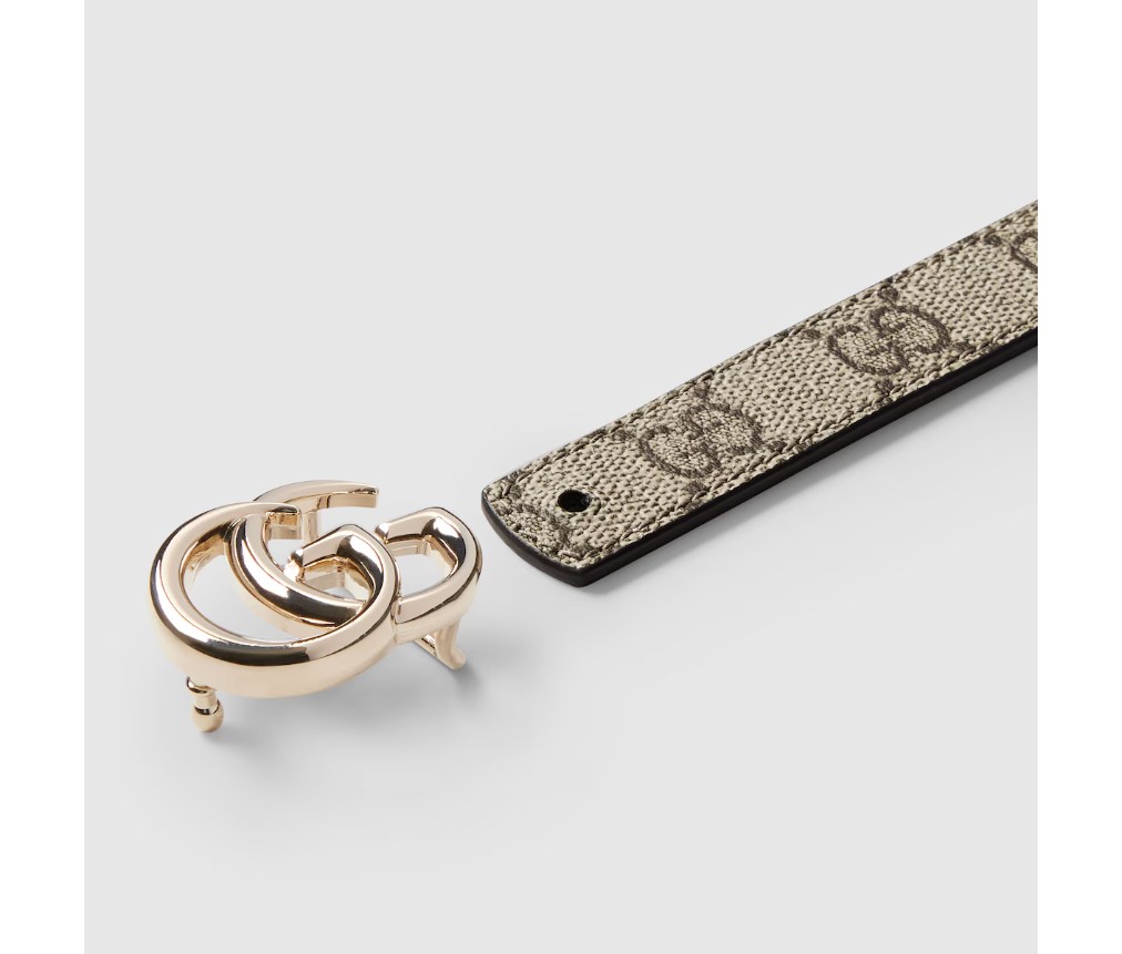 2025 가을/겨울 컬렉션에서 한눈에 알아볼 수 있는 GG 마몽은 새로운 해석을 선보입니다. GG 슈프림과 가죽 소재로 제작된 이 양면 얇은 벨트는 더블 G 버클로 더욱 돋보입니다.