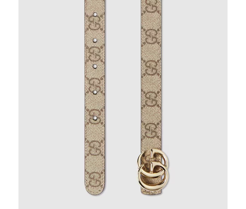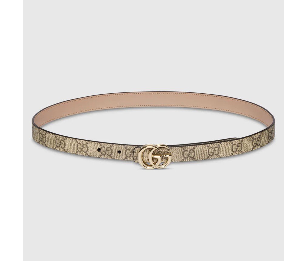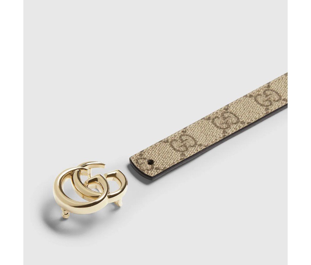 GG 마몽 컬렉션이 새 시즌을 맞아 양면으로 착용 가능한 리버시블 옵션을 선보입니다. GG 슈프림과 가죽으로 제작된 이 얇은 벨트는 시그니처 더블 G 버클이 특징입니다.