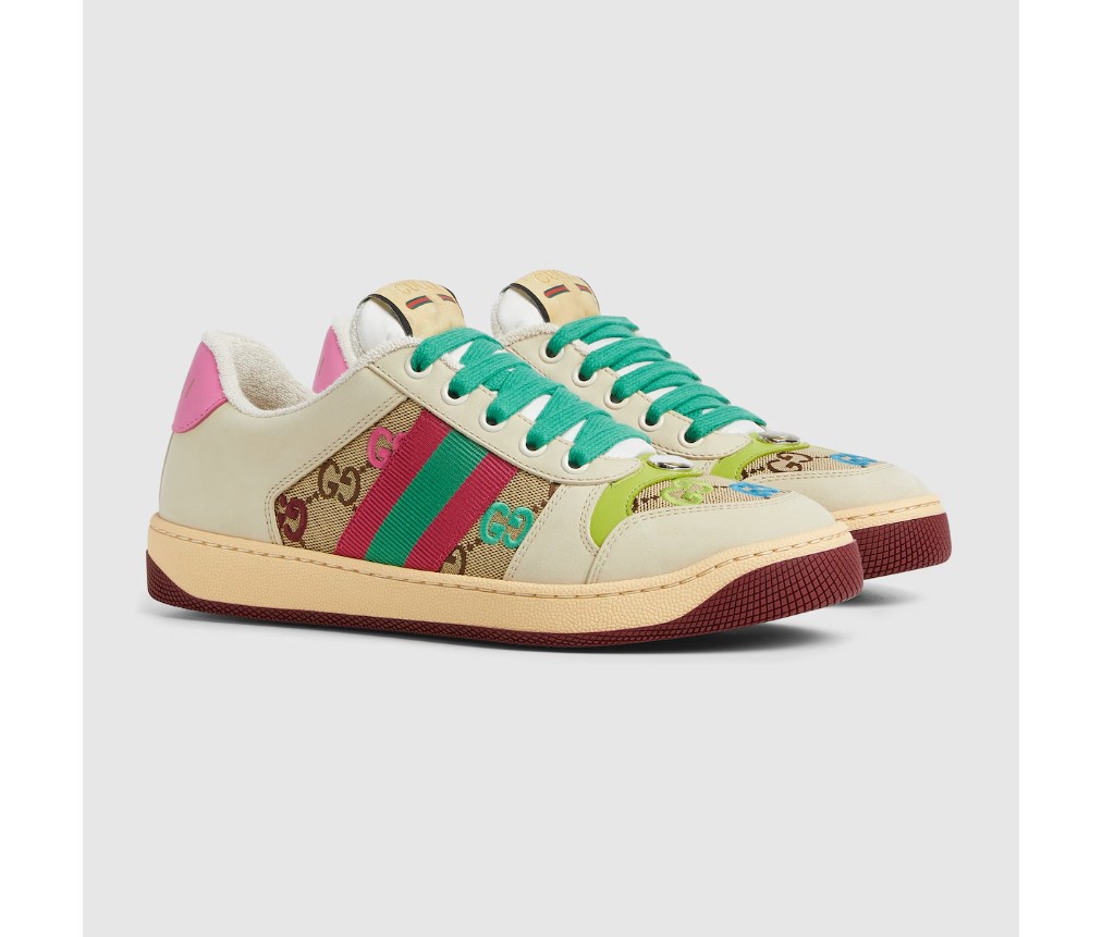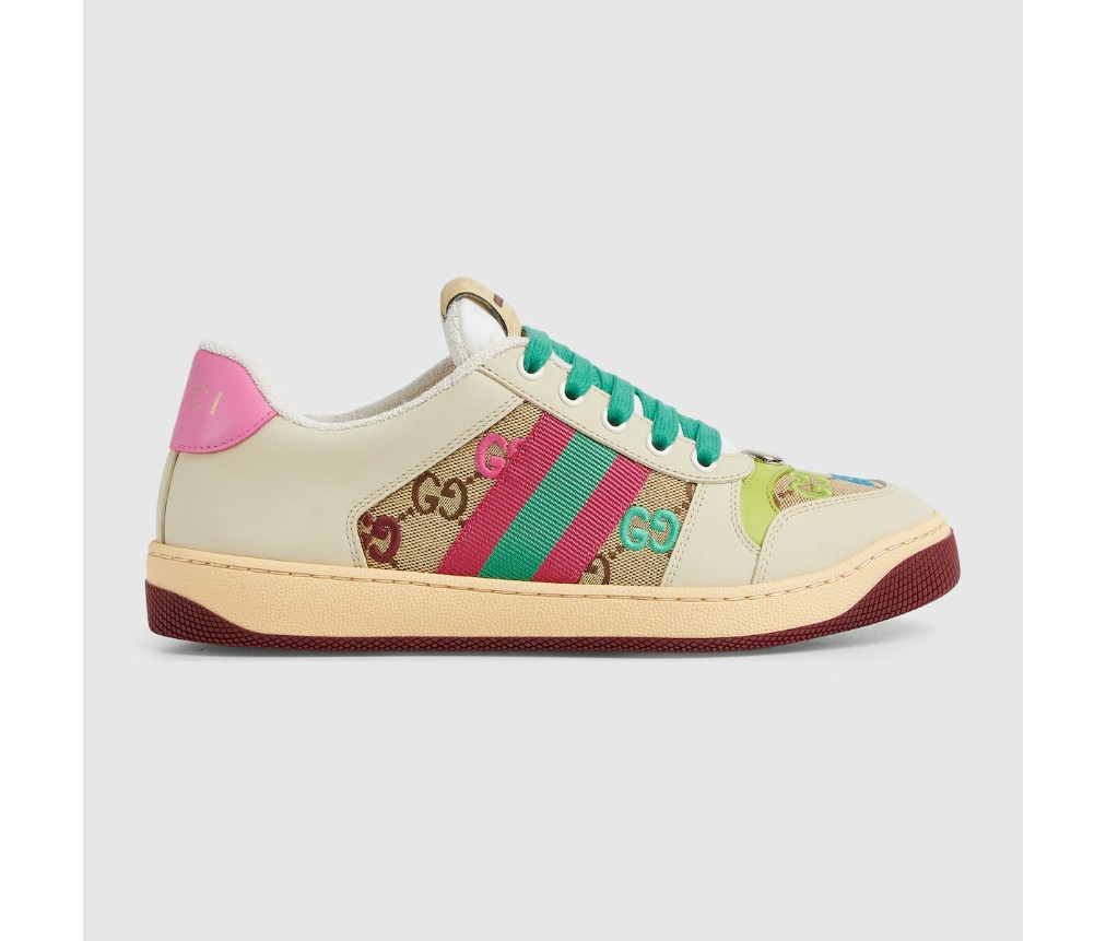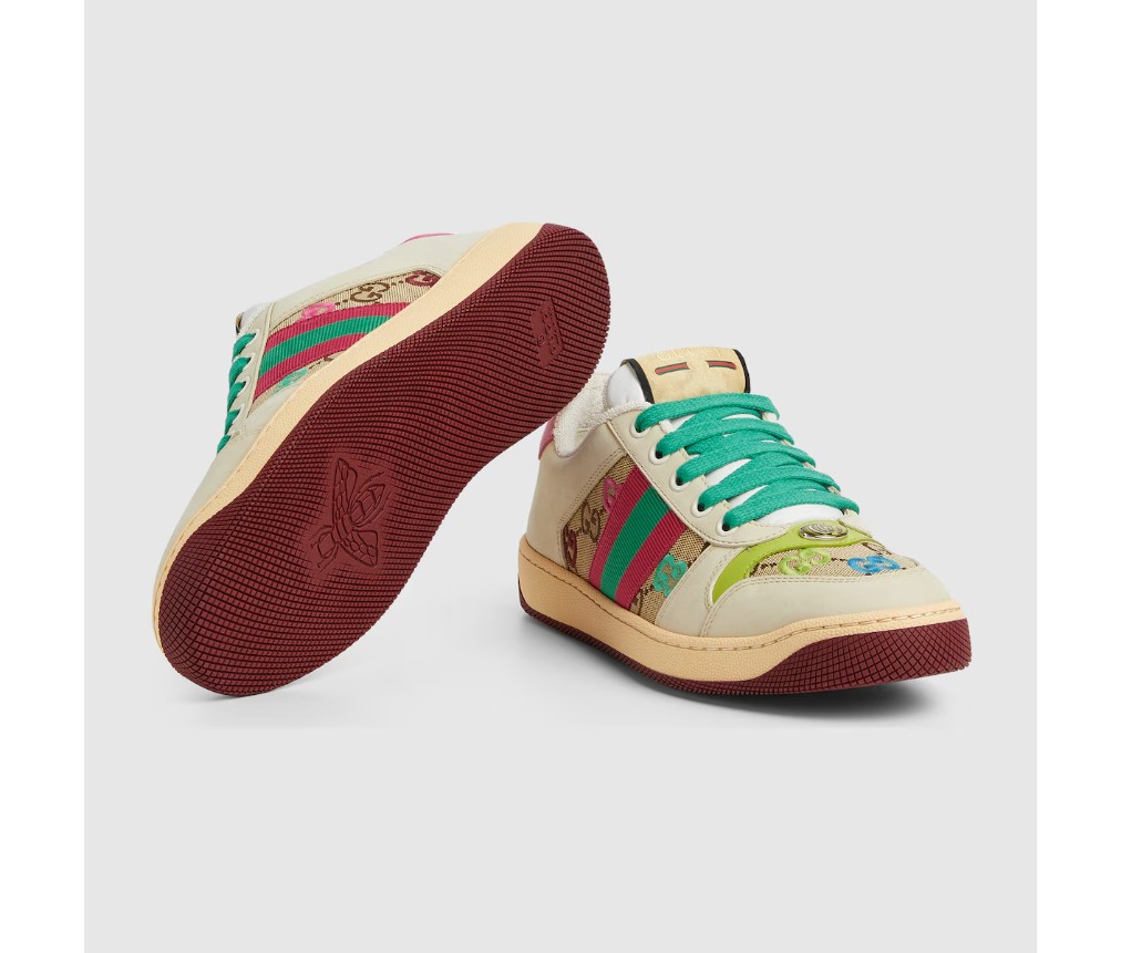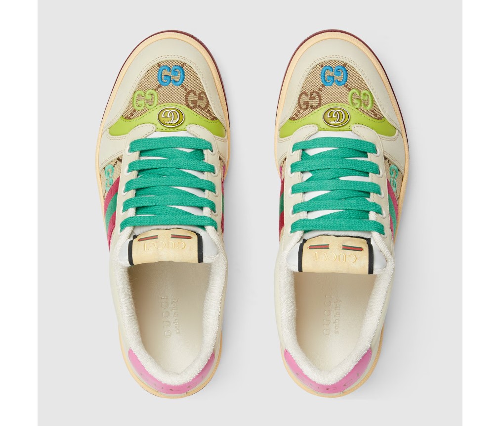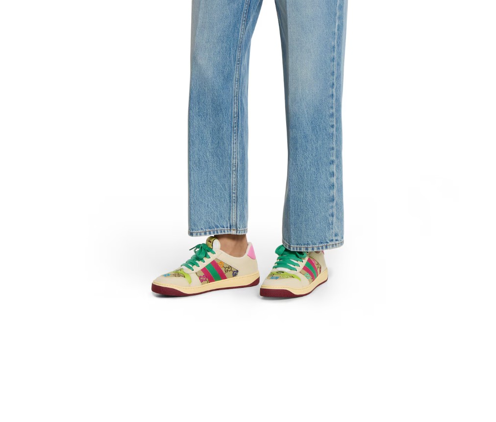 1970년대 클래식 스니커즈에서 영감을 받은 스크리너 스니커즈는 방어적인 스포츠 무브먼트에서 이름을 따왔습니다. 이 상징적인 스타일은 다채로운 GG 자수와 웹(Web)을 연상시키는 핑크와 그린 스트라이프가 돋보이는 멀티 컬러 캔버스 소재로 선보입니다.