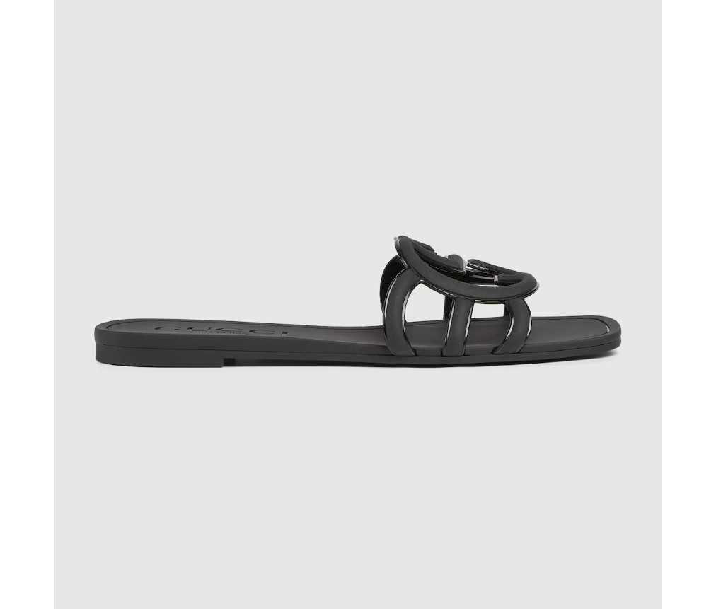 스타일 780307 J8700 1000여름의 향취와 이탈리아 해안의 비치 클럽에서 영감을 받은 이 아이템은 구찌 리도 컬렉션의 일부입니다. 구찌의 상징적인 코드와 세련된 패턴이 프리폴 컬렉션을 위해 현대적인 방식으로 재해석되었습니다. 이 슬라이드 샌들은 블랙 러버 소재에 인터로킹 G 컷아웃이 더해져 독특한 로고 감각으로 스타일을 더욱 풍부하게 합니다.