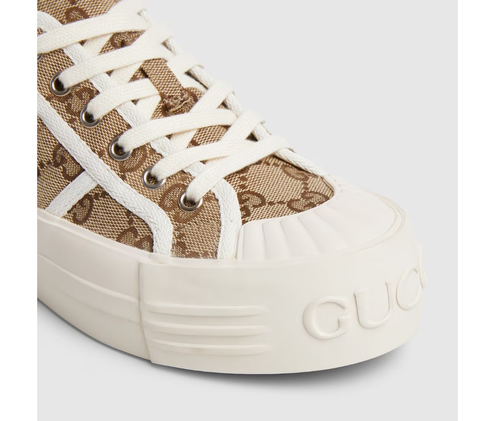 시그니처 오리지널 GG 캔버스 소재로 정교하게 제작된 이 스니커즈는 헤리티지 디자인과 현대적인 미학이 조화를 이룹니다. 'Gucci' 로고가 새겨진 고무 밑창이 대담한 실루엣을 더욱 돋보이게 하며, 시선을 사로잡는 룩과 탁월한 편안함을 선사합니다.