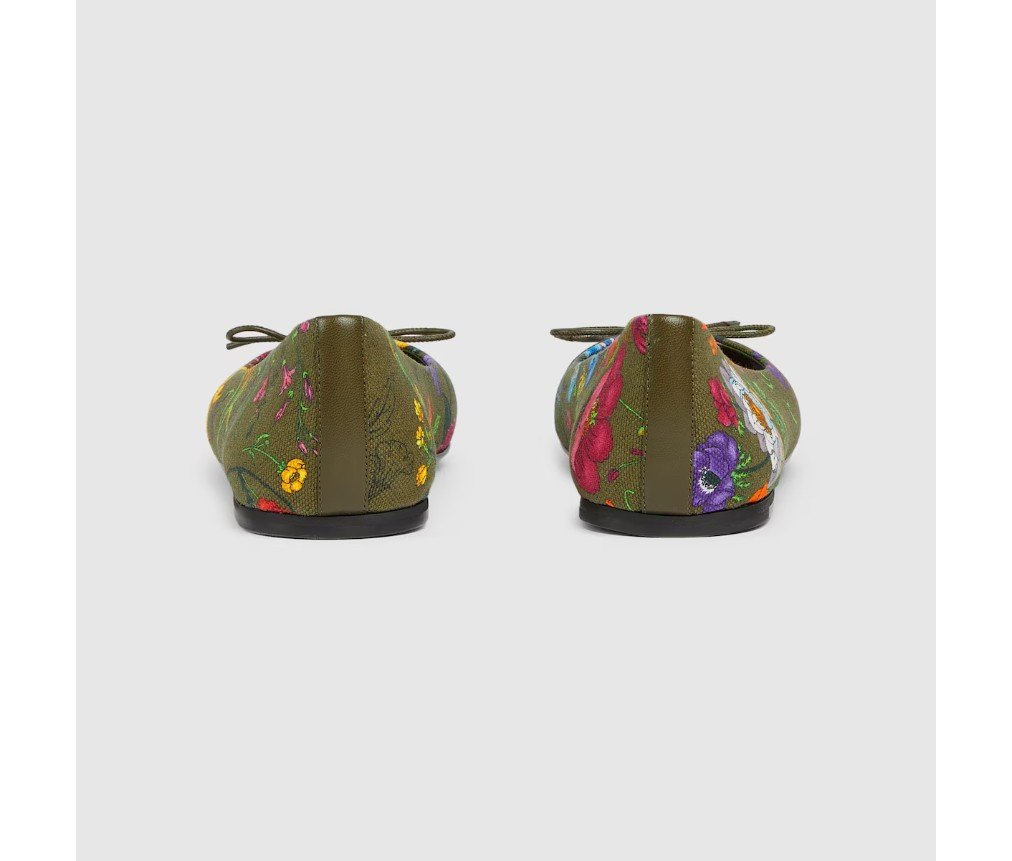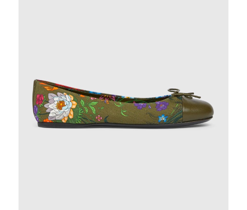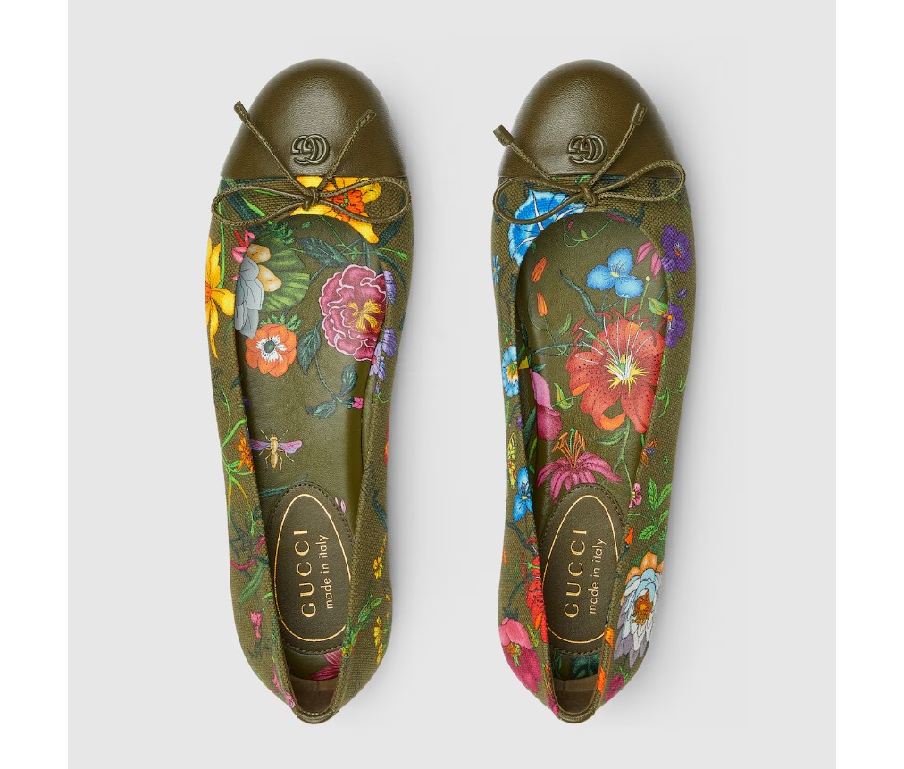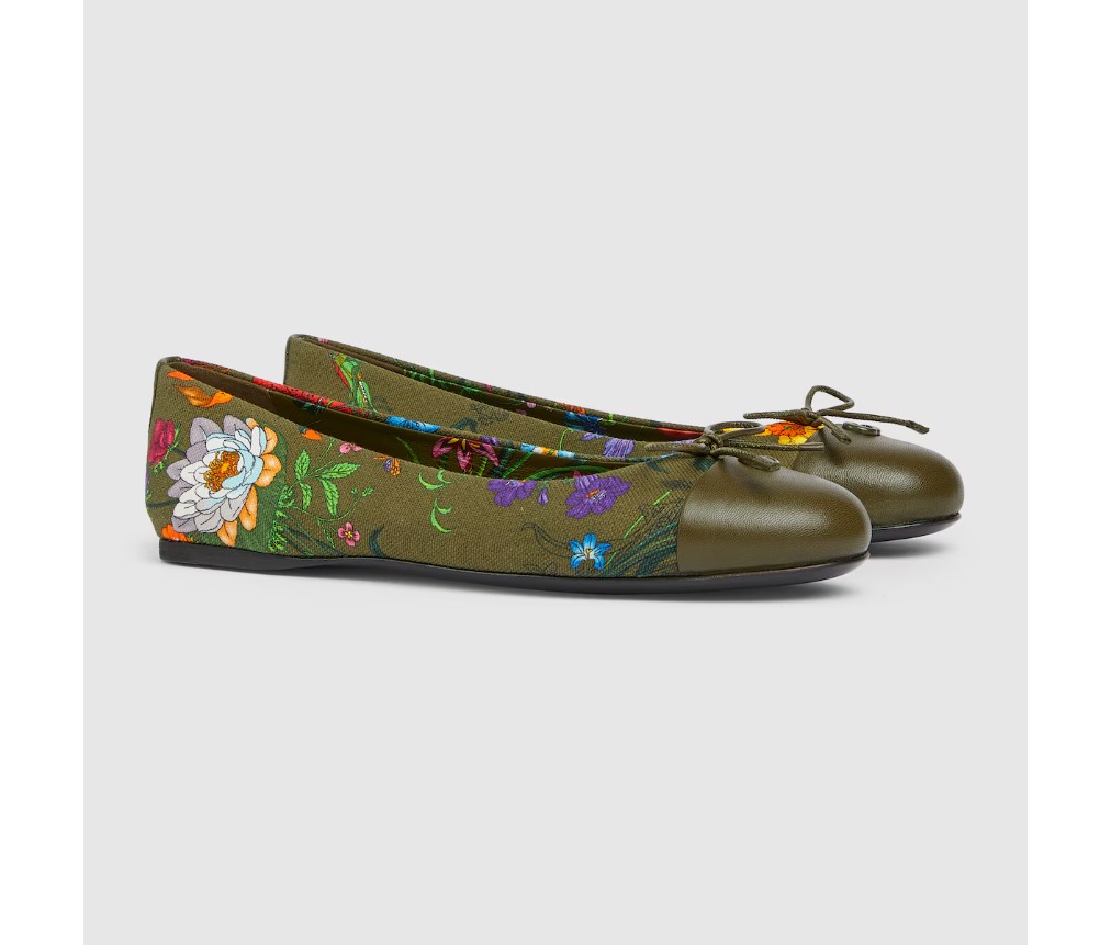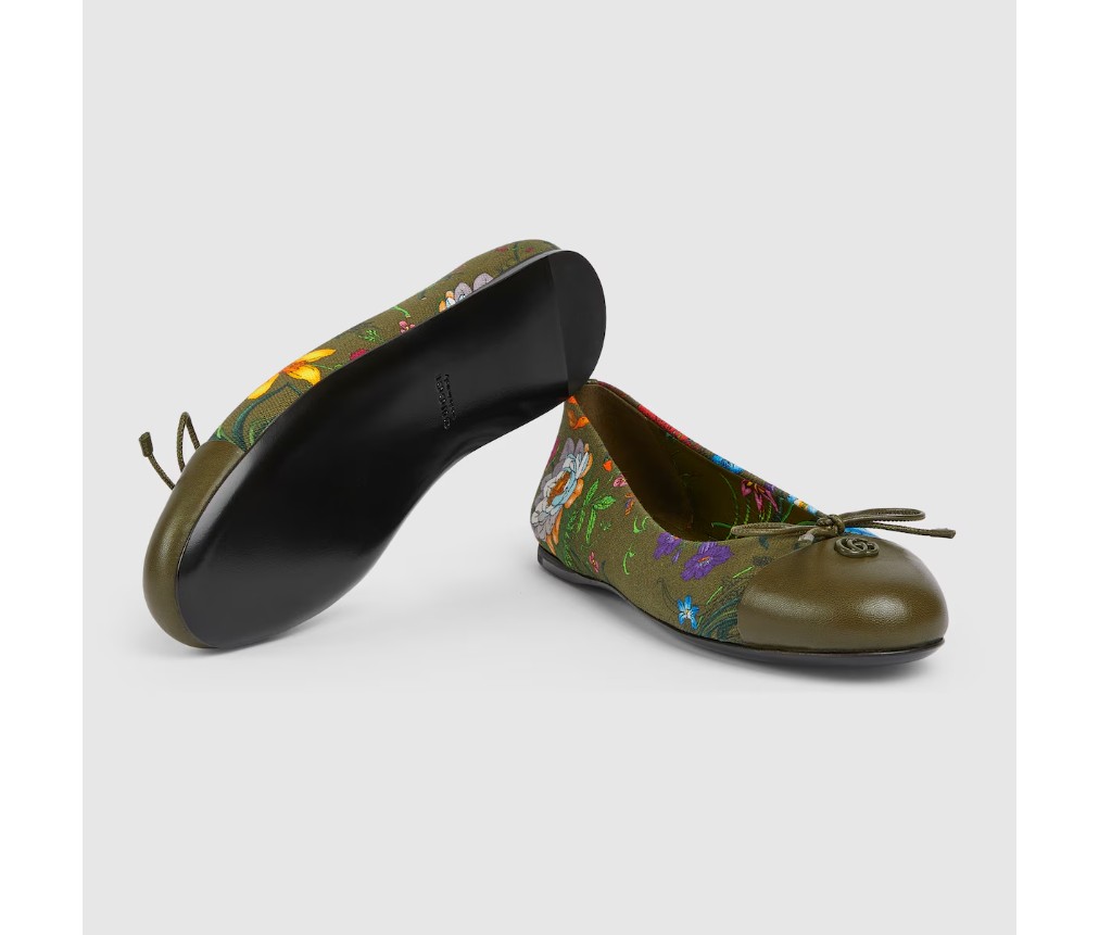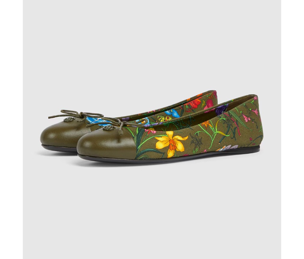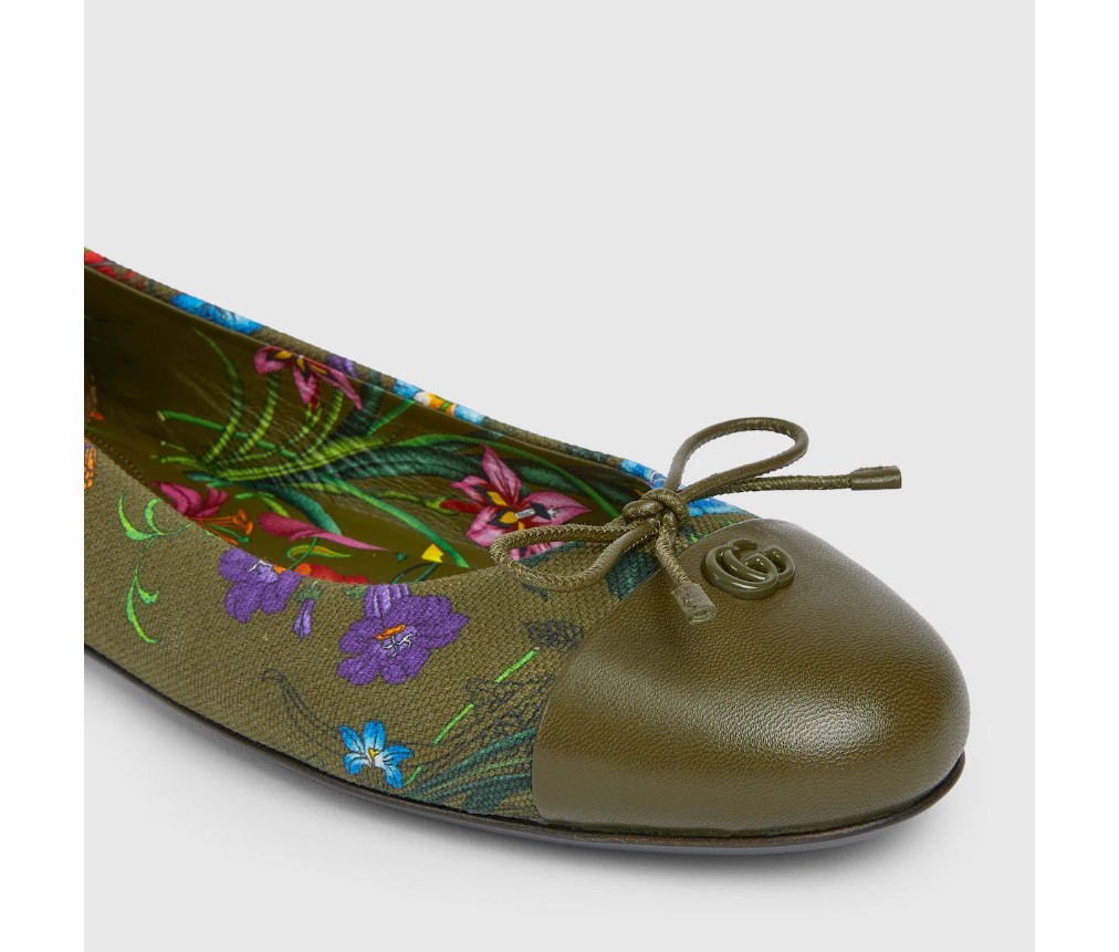 아카이브 플로라 프린트는 2025 프리폴 컬렉션을 위한 신선한 색조와 그라데이션을 로맨틱한 감각으로 풀어냈습니다. 캔버스 소재의 이 발레 플랫은 더블 G와 리본 디테일로 포인트를 주었습니다.
